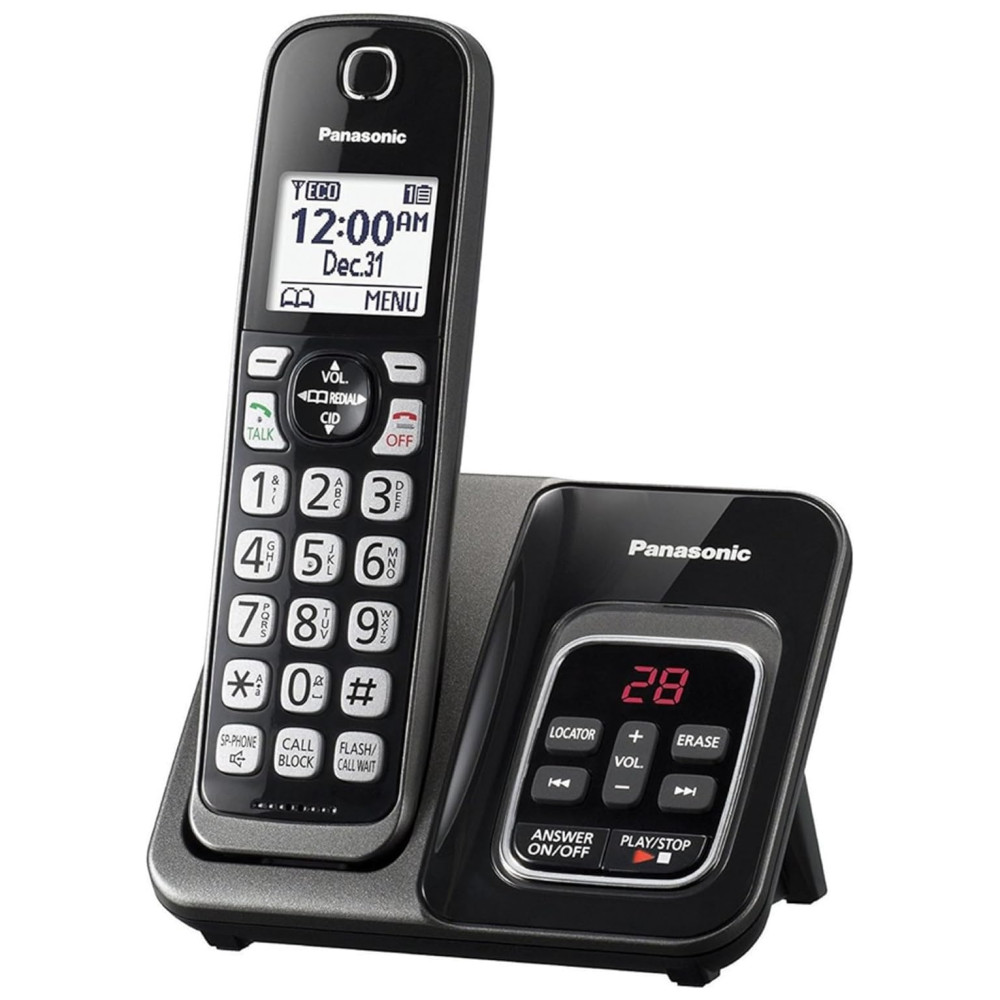 Cor Preto Metálico Tamanho 1 aparelho Estilo Identificador de chamadas falante Secretária eletrônica O sistema de telefonia digital aprimorado expansível Panasonic KX TGD530M DECT 6.0 da Panasonic com sistema de secretária eletrônica e secretária eletrônica e 1 aparelho sem fio é uma solução inteligente e confiável para telefone residencial , escritório em casa, projetada para facilitar o gerenciamento diário das chamadas e mais conveniente para todos. Inclui um fone sem fio na unidade base, expansível até seis aparelhos aparelhos adicionais vendidos separadamente. Ouça quem está ligando do outro lado da sala sem ter que se familiarizar com os anúncios de texto para fala em inglês ou espanhol na unidade base do telefone e nos aparelhos sem fio no escritório em casa , em casa. Veja rapidamente quem está ligando com visor retroiluminado branco de 4cm, elimine chamadas indesejadas com o recurso Bloqueio de chamadas e as funções da secretária eletrônica totalmente integradas, tornando este sistema telefônico sem fio um dos sistemas mais confiáveis e funcionais disponíveis no hoje. Guiado estão disponíveis tutoriais sobre recursos para este telefone sem fio no site do fabricante AVISO LEGAL DECT 6.0 é um termo de marketing norte americano para dispositivos DECT fabricados para os Estados Unidos e Canadá, operando a 1,9 GHz.