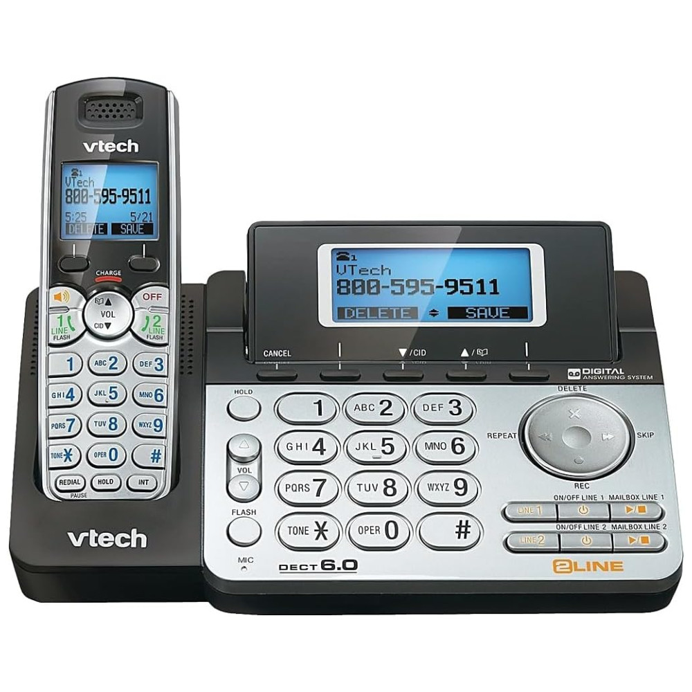 VTech DS6151 2 Sistema de telefone sem fio de 2 linhas e 2 telefones para casa ou empresa pequena com sistema de atendimento digital e caixa de correio em cada linha, prata