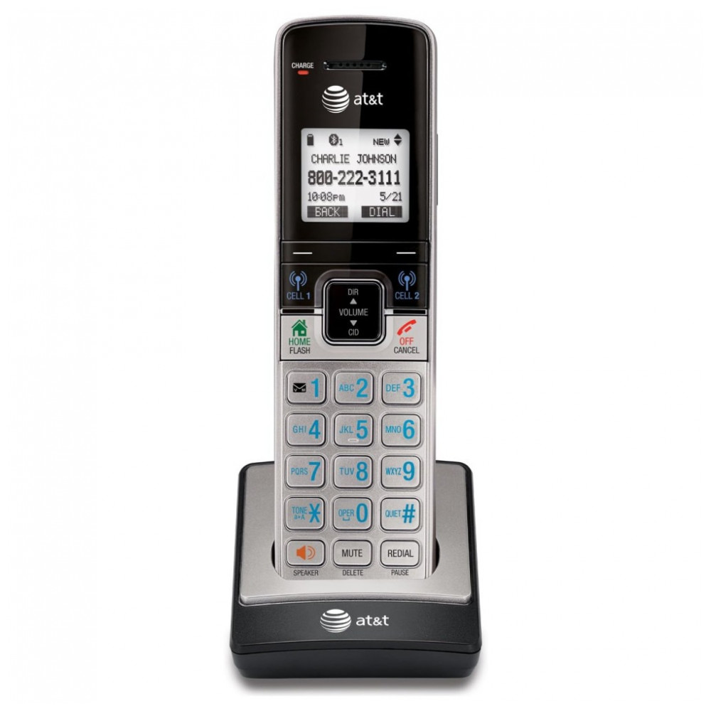 O telefone sem fio adicional TL90073 da ATT é perfeito para complementar o sistema TL96273. Com recursos como Conexão com Celular, operação de várias linhas virtual e notificações móveis, você estará sempre conectado em casa. Com esse sistema, você pode fazer e receber chamadas de até duas linhas celulares, uma linha fixa ou todas as três de qualquer cômodo, sem precisar pegar no seu celular. Além disso, os aparelhos emitem um alerta e exibem uma notificação quando os celulares conectados recebem uma nova mensagem de texto, e-mail ou atualização de redes sociais. Possui display iluminado de fácil leitura, permite fazer e receber chamadas da linha fixa e celular, anúncio de identificador de chamadas, áudio HD, viva-voz no aparelho, e muitos outros recursos fantásticos. Expanda suas opções de comunicação em casa com o TL90073.