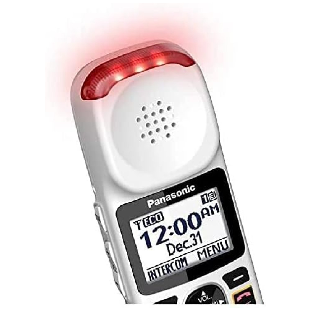 Grande LCD retroiluminado branco, teclas de discagem por toque ampliadas e controles, além de toques visuais de LED vermelho brilhante na unidade base e no fone, aumentam a visibilidade e a conveniência da chamada