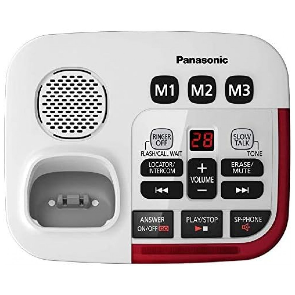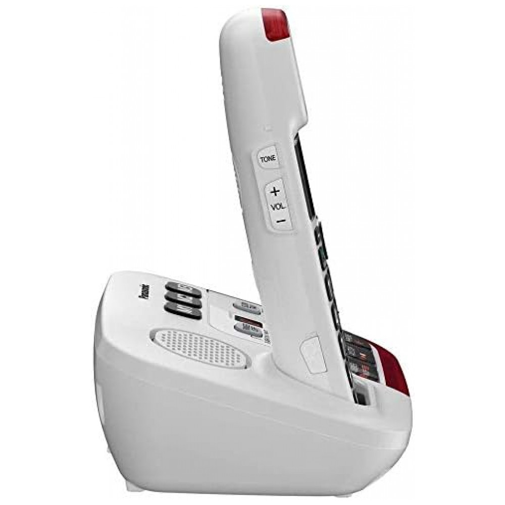 LCD grande com luz de fundo branca, teclas e controles ampliados de discagem por toque, além de toques visuais de LED vermelho brilhante na unidade base e no telefone, aprimoram a visibilidade e a conveniência de chamadas
