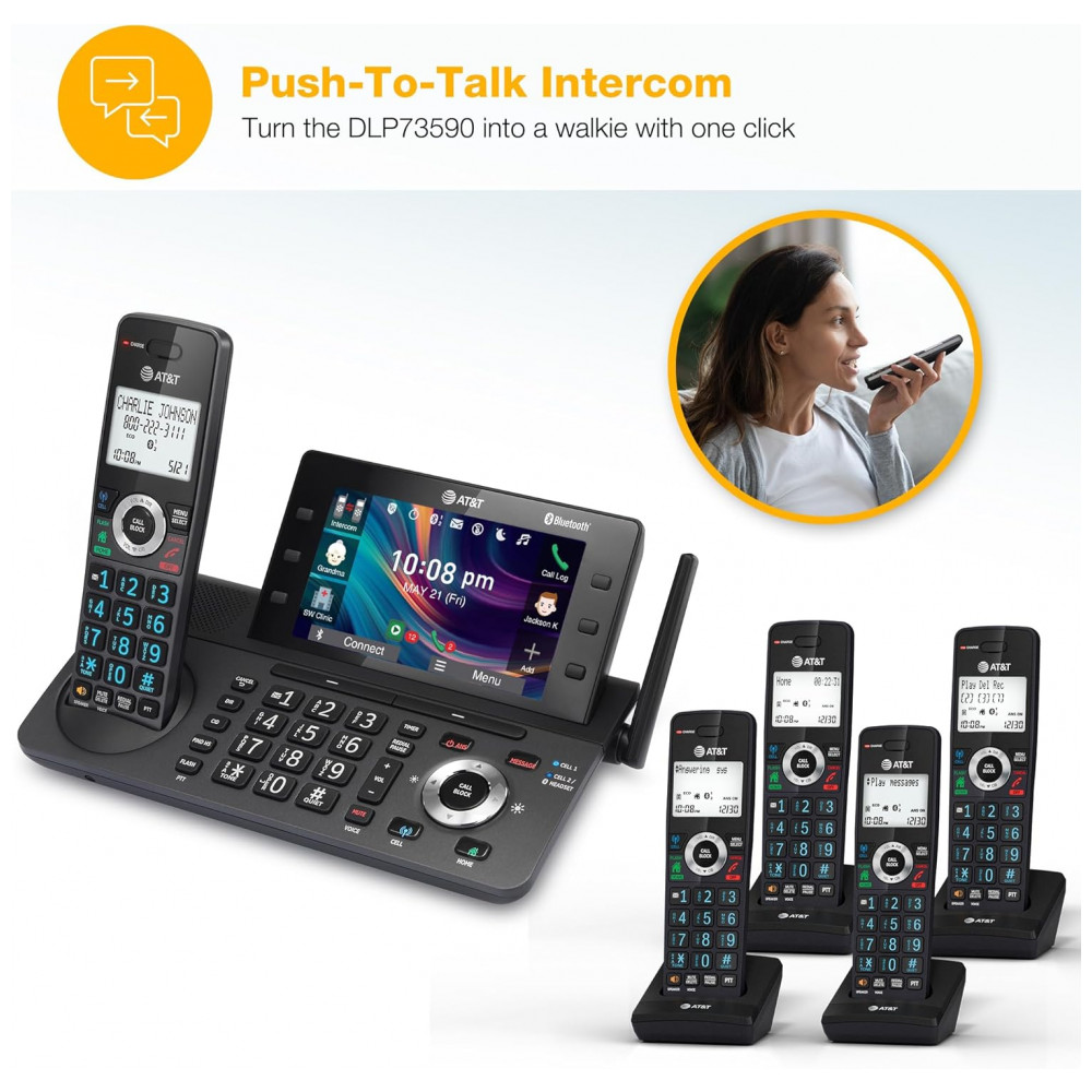 Telefone Sem Fio AT&T DLP73590 Grafite/Preto 5 Handsets DECT 6.0 com Tela Colorida 5″ Bloqueador Inteligente Connect to Cell Bluetooth Secretária Digital 40 Minutos Conferência Intercom