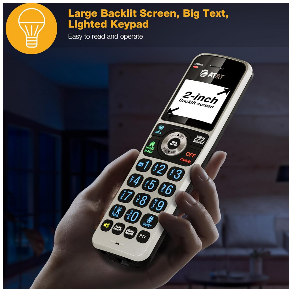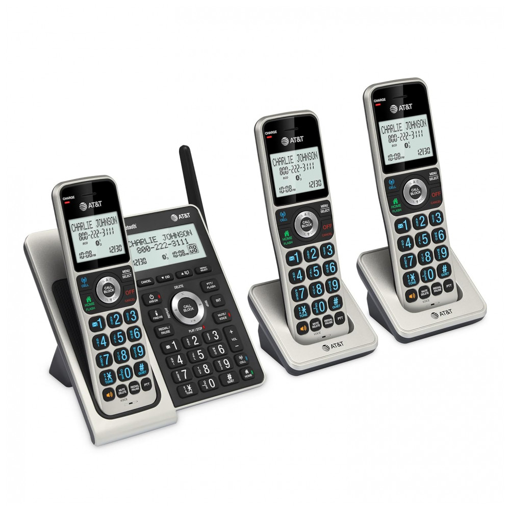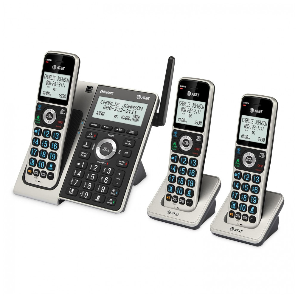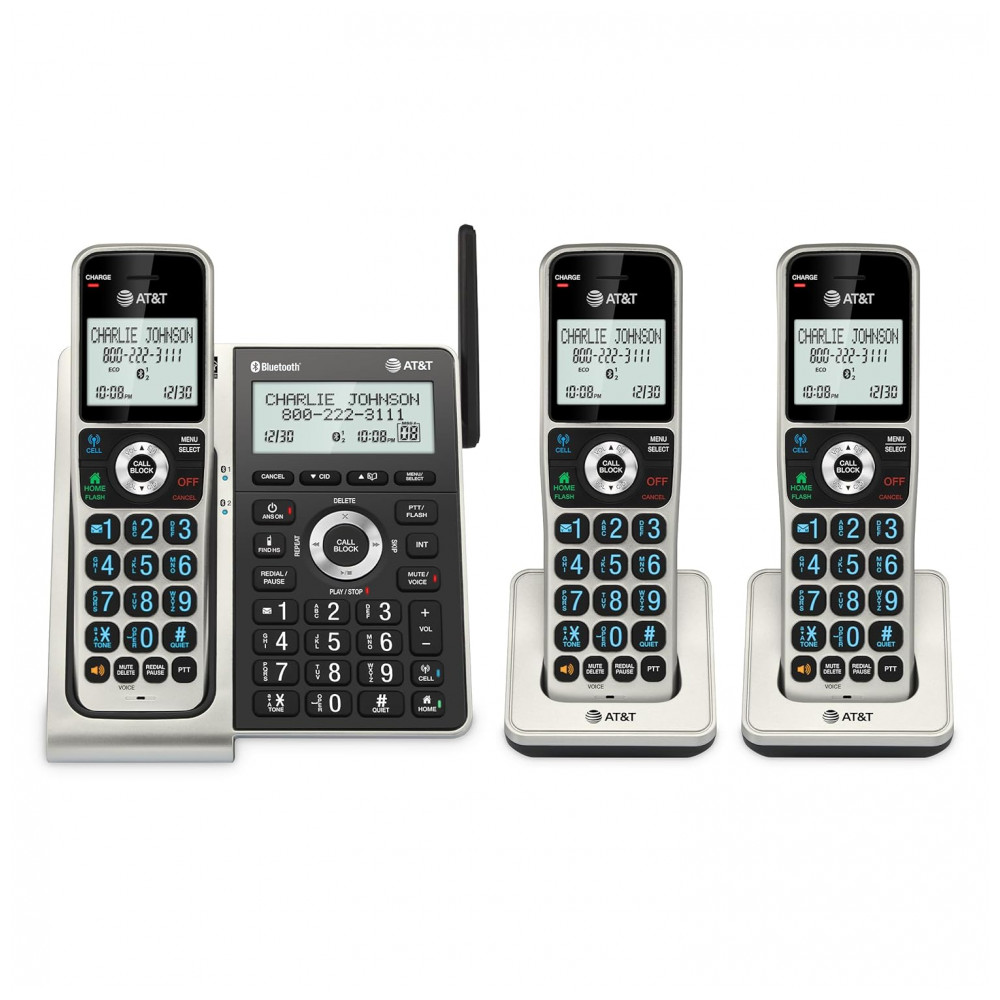 Telefone Sem Fio AT&T Titânio/Preto 3 Terminais Bluetooth Bloqueador Inteligente Display 51 cm Teclado Iluminado BL3107-3 110V
