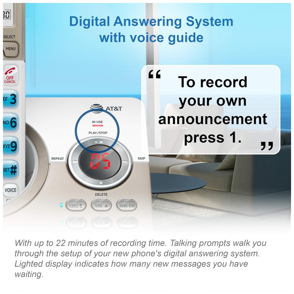 Sistema de atendimento digital com guia de voz Com até 22 minutos de gravação. Os prompts de fala orientam você na configuração do sistema de atendimento digital do seu telefone. O display iluminado indica quantas mensagens novas você está esperando.