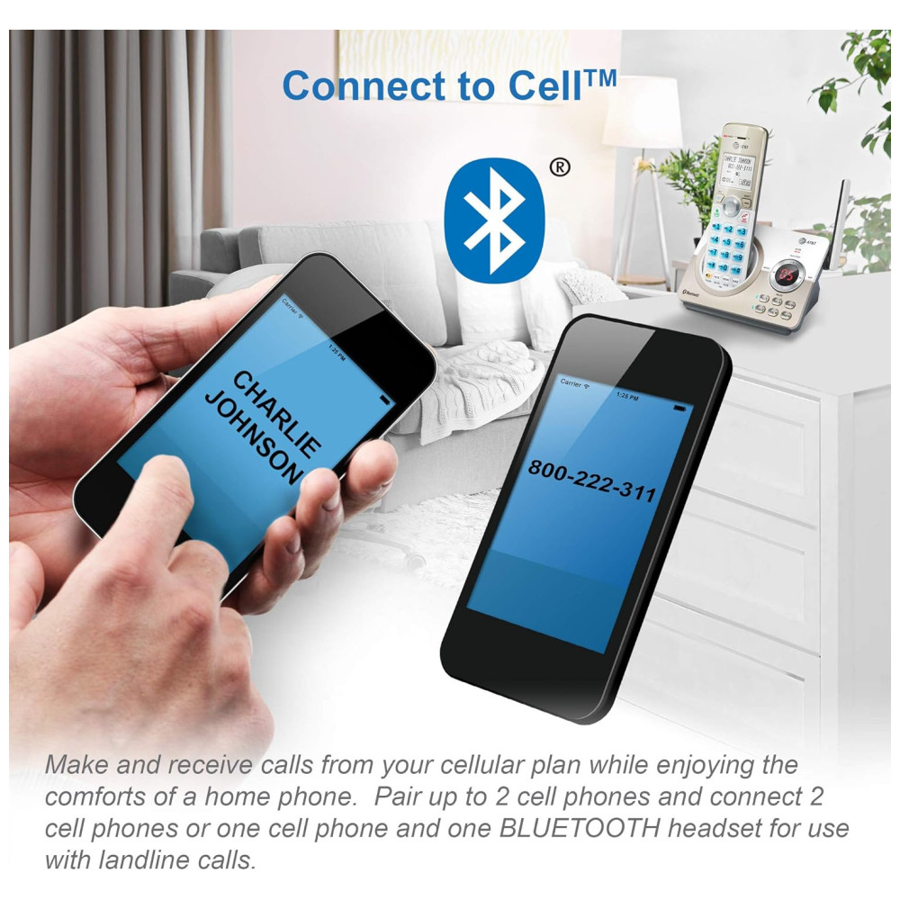 Conecta no celular Faça e receba chamadas do seu plano de celular enquanto desfruta do conforto de um telefone residencial. Emparelhe até 2 telefones celulares e conecte 2 telefones celulares. Ou um telefone celular e um fone de ouvido Bluetooth para uso com chamadas para telefones fixos.