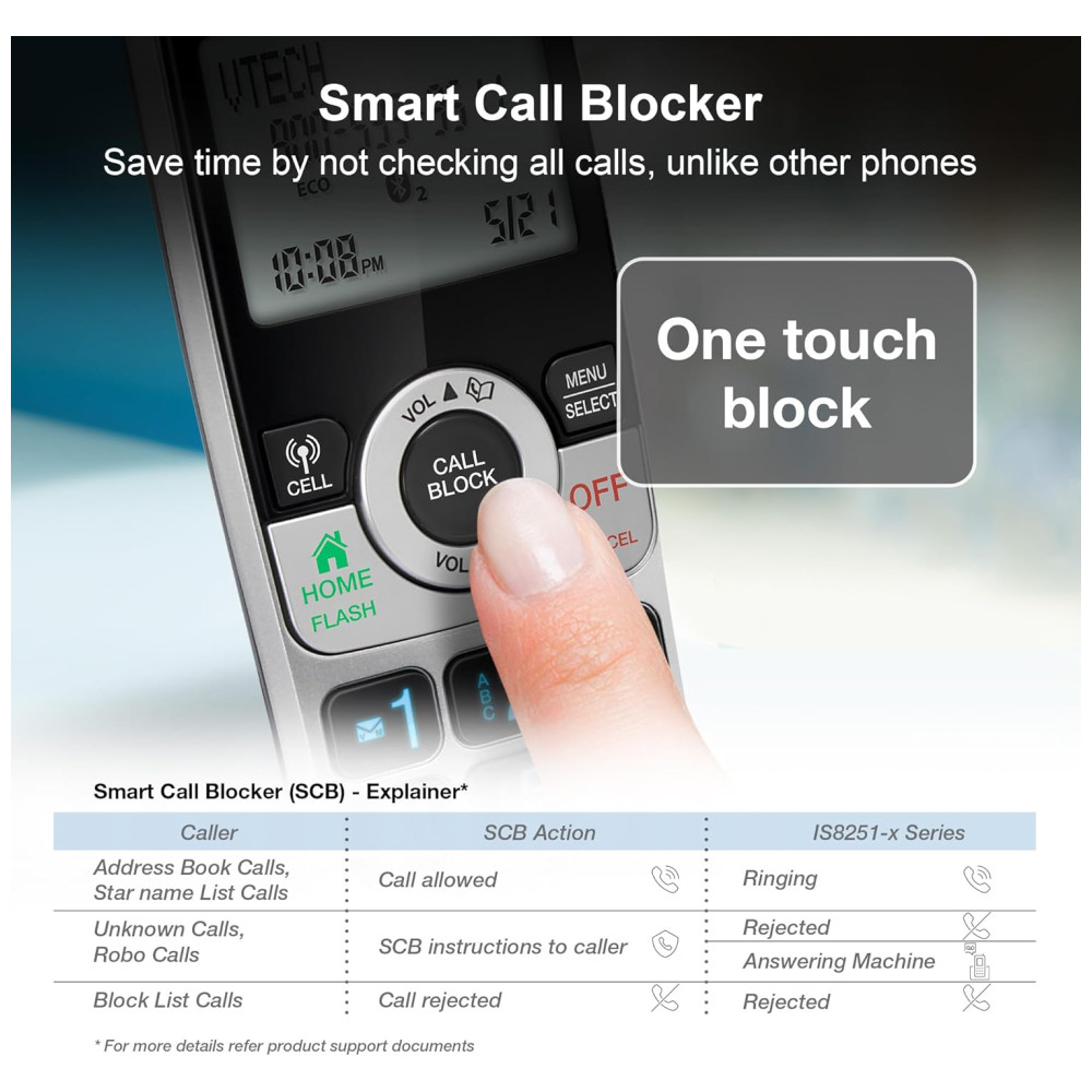 Telefone sem Fio com Sistema de Atendimento e Bloqueio de Chamada 3 Unidades VTECH IS8251 3 Prateado