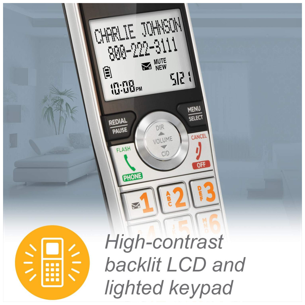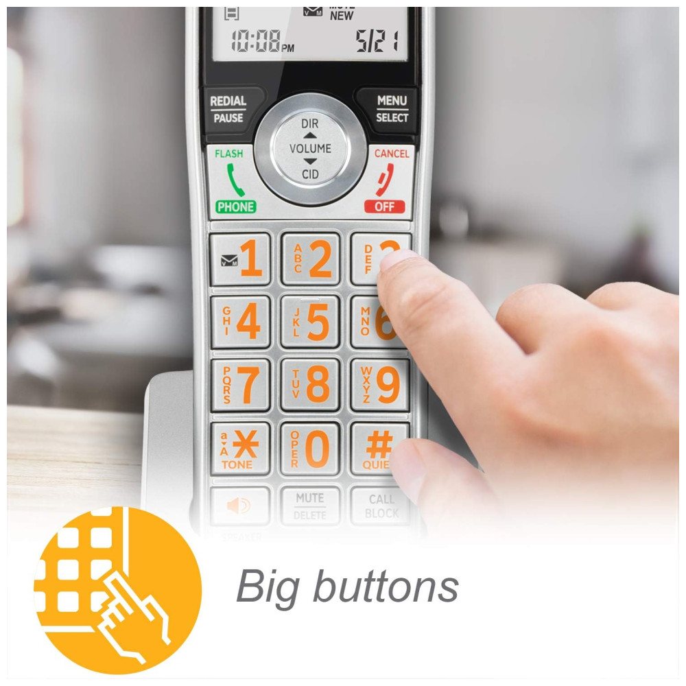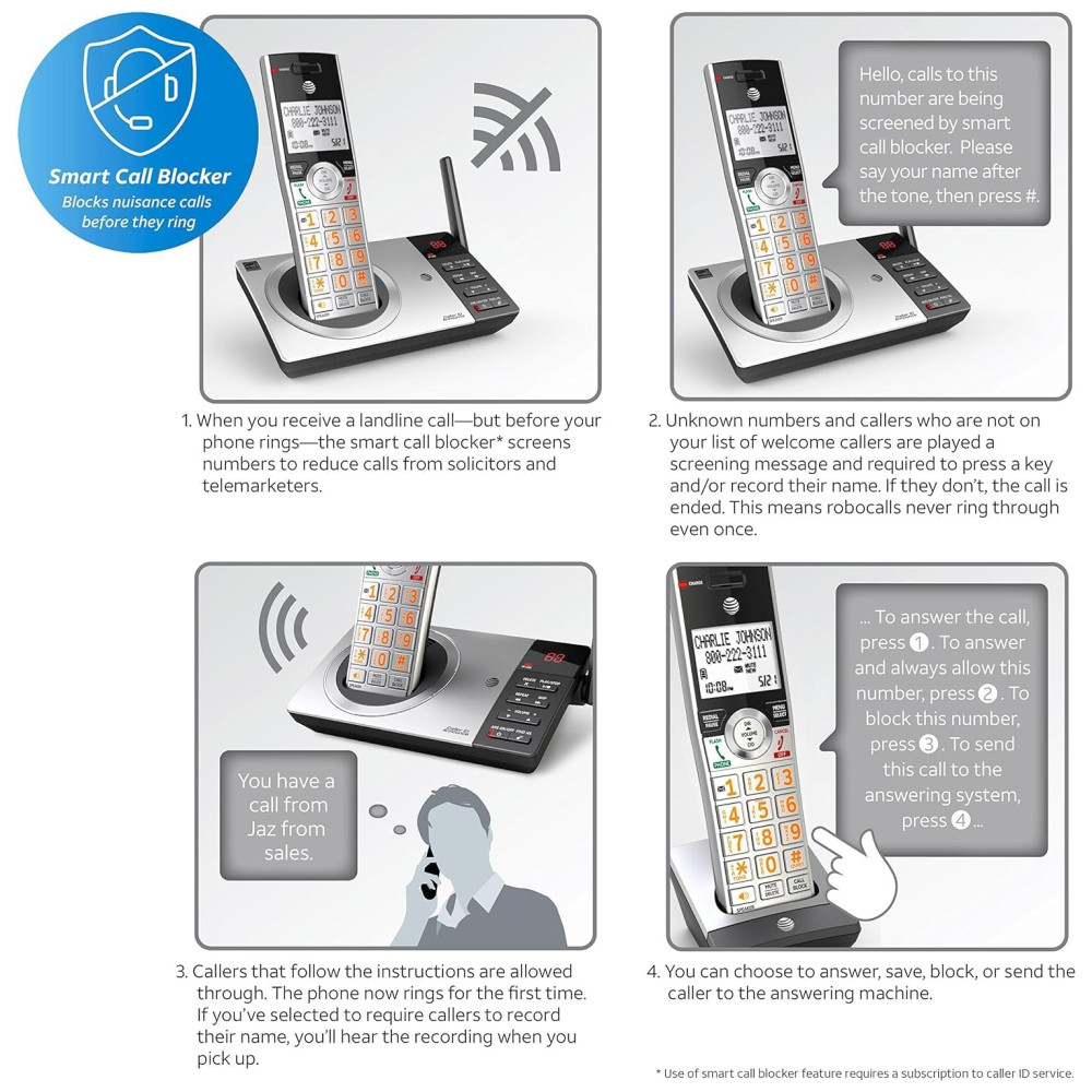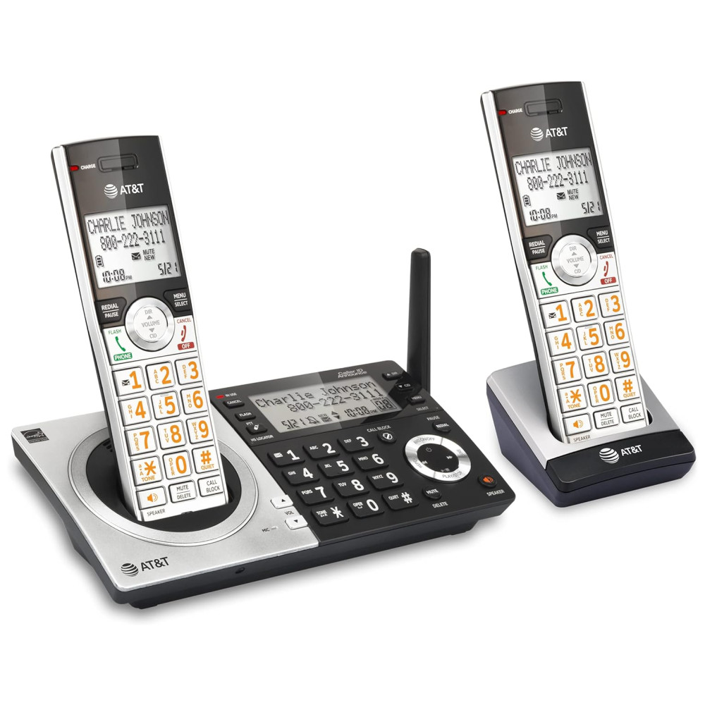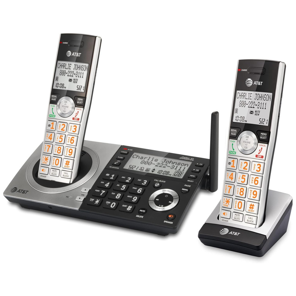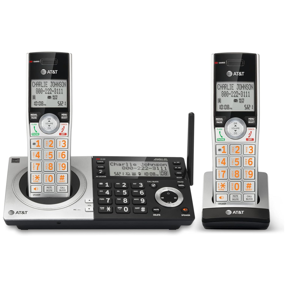ATT CL83207 Telefone sem fio expansível DECT 6.0 com bloqueador de chamadas inteligentes, prateado , preto com 2 aparelhos