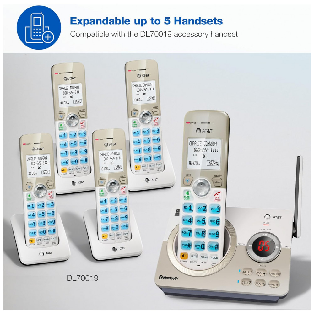 Telefone Sem Fio Expansível AT&T DL72419 Branco 4 Handsets Tela 18” Iluminada Bloqueio Inteligente Chamadas Bluetooth