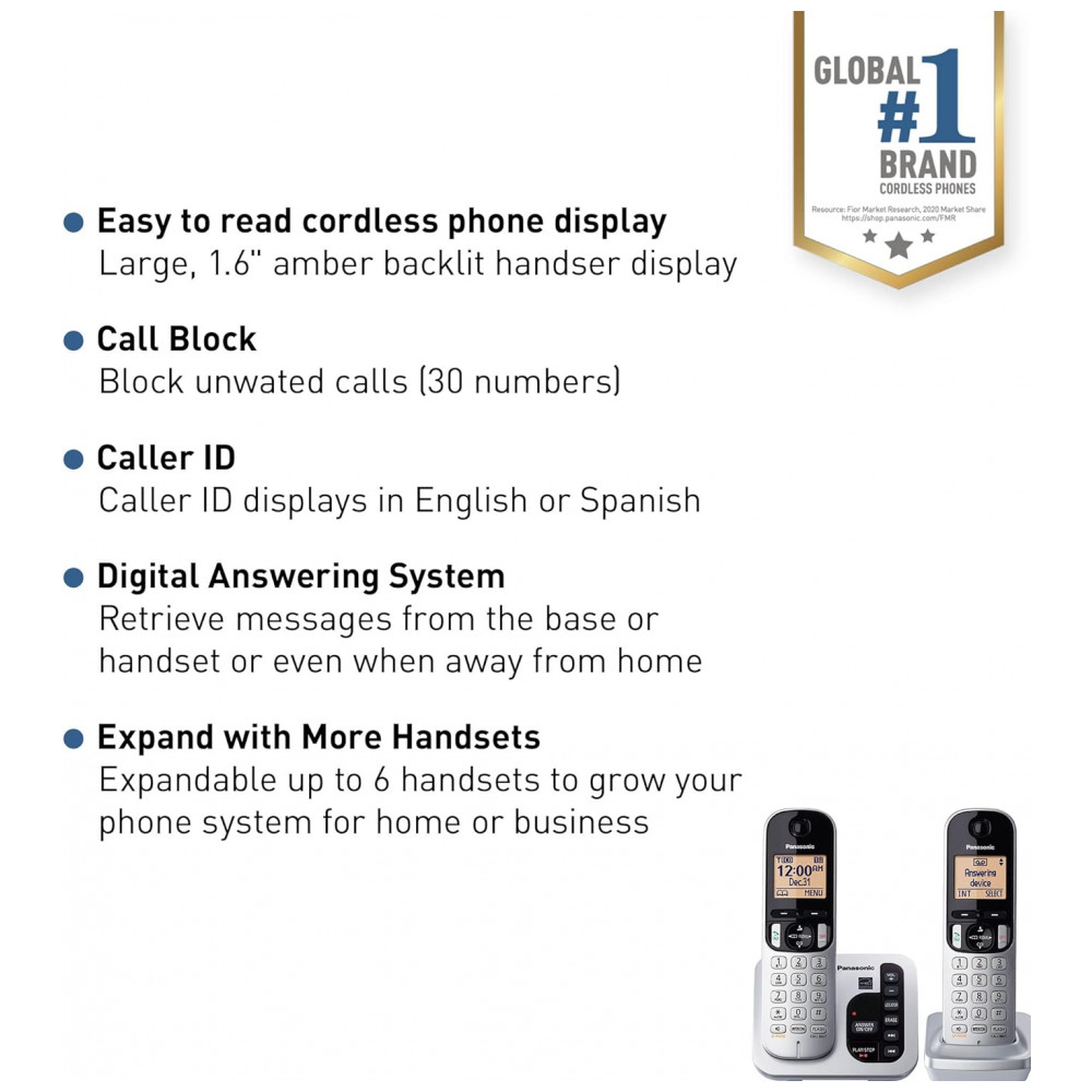 Telefone sem fio Expansível com Secretária Eletrônica e Identificador de Chamadas 2 Aparelhos Panasonic DECT 6.0