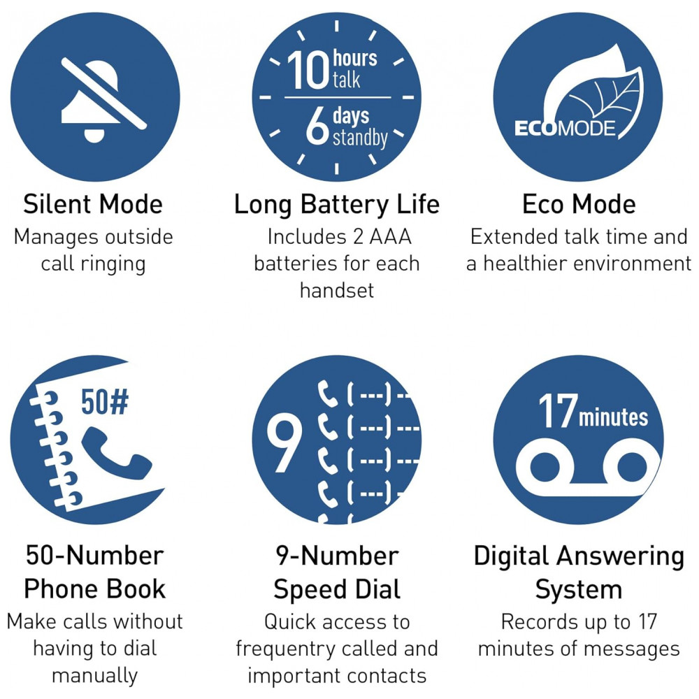 Telefone Sem Fio com Secretária Eletrônica Digital Sistema de telefonia residencial expansível com secretária eletrônica digital que zena até 17 minutos de mensagens O contador de mensagens de leitura rápida permite que você verifique as mensagens facilmente