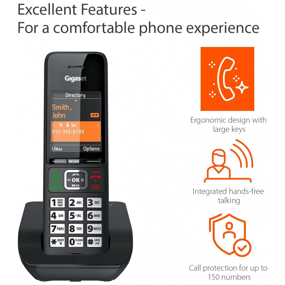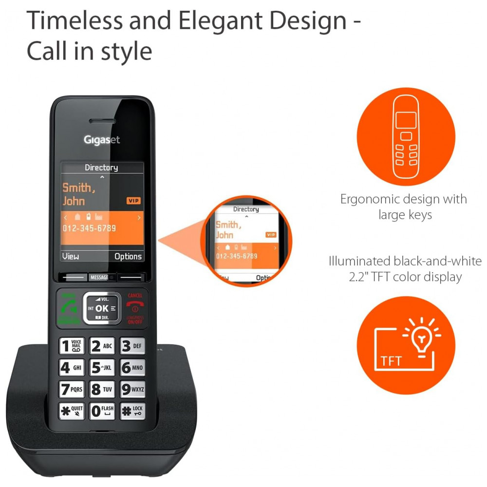 Telefone Sem Fio Gigaset Comfort 552 DECT Titânio/Preto 1 Handset com Tela Colorida 22″ Proteção de Chamadas Agenda para 200 Contatos Viva-voz HD Fabricação Alemã
