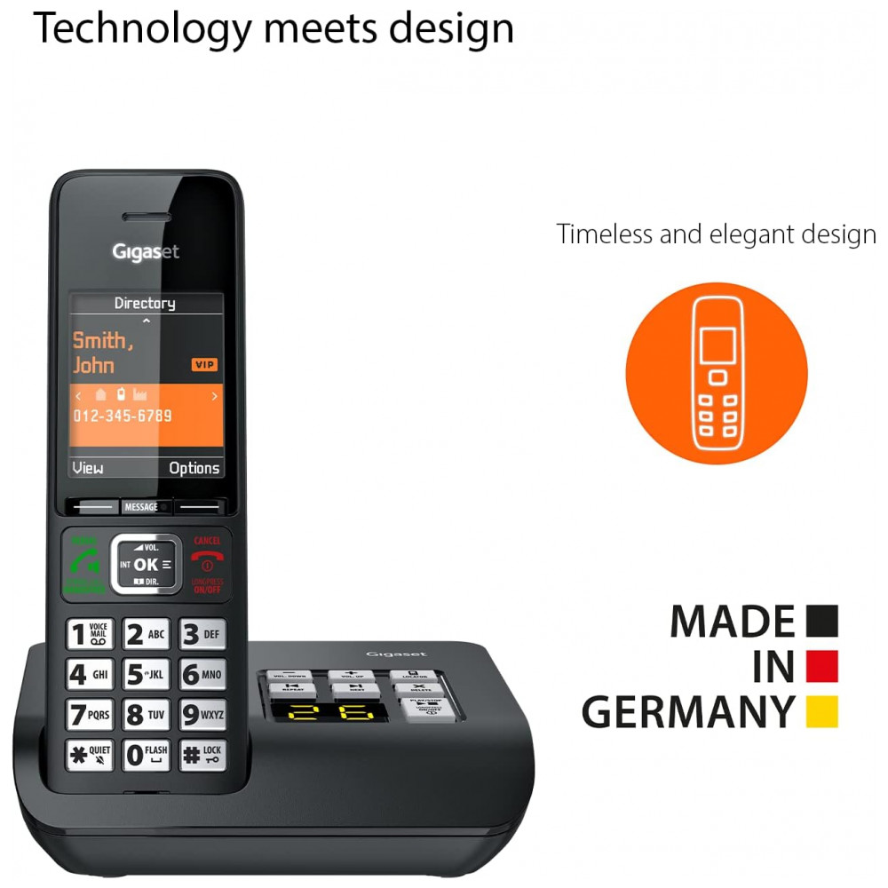 Produzido na Alemanha pela Gigaset, o modelo combina design elegante em titânio/preto com materiais plásticos resistentes e clipes de cinto para portabilidade dos handsets.