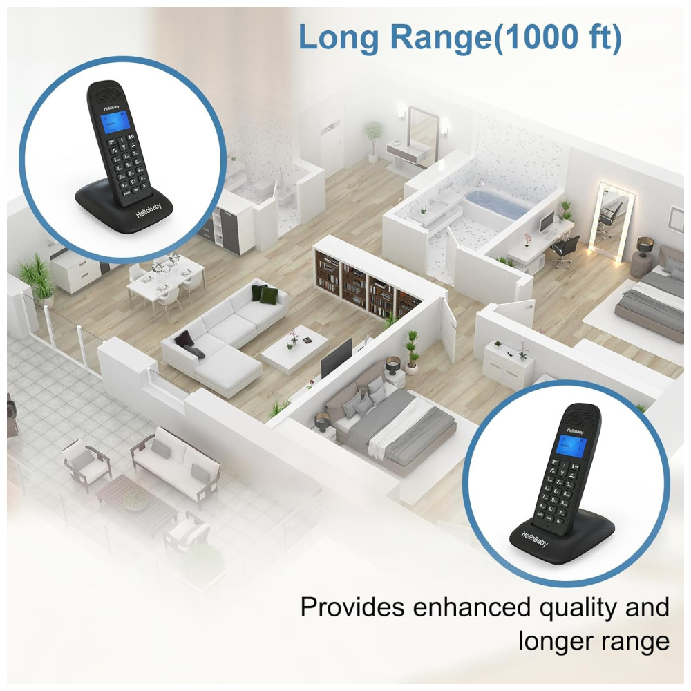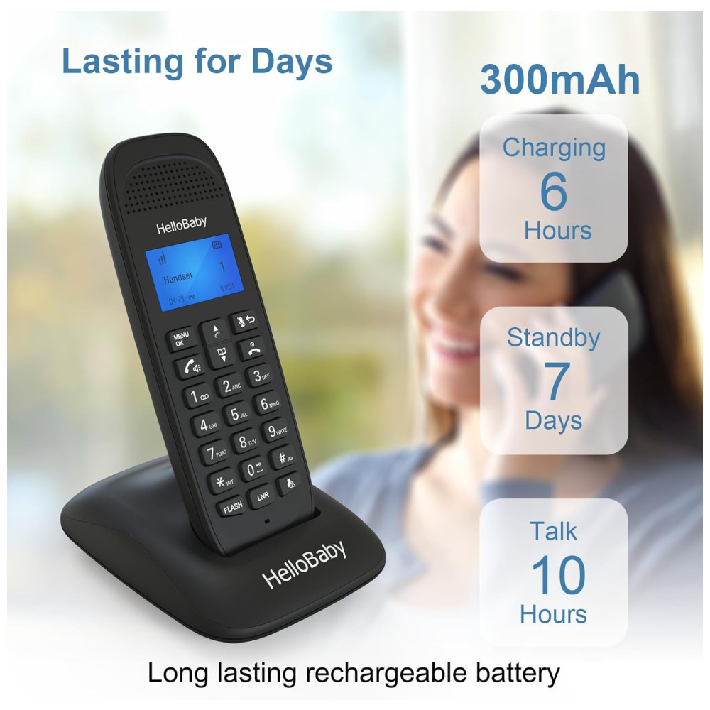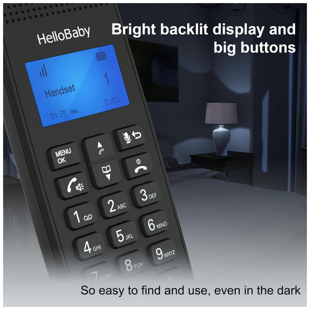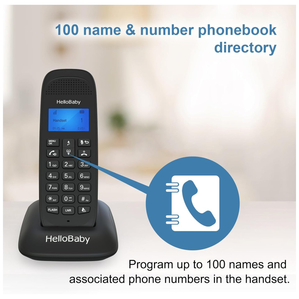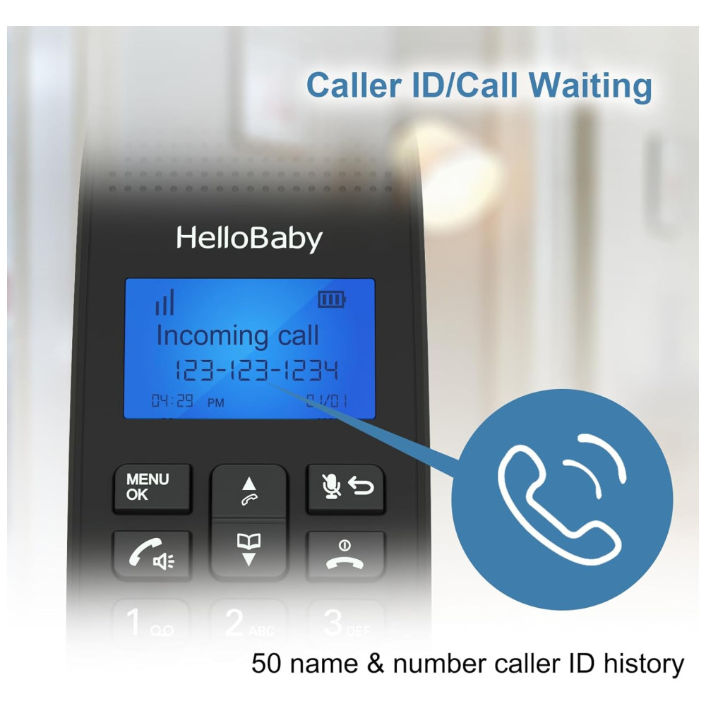 Telefone sem Fio HelloBaby DECT 6.0 para Residência com Identificador de Chamadas Bloqueio de Chamadas Viva-voz de Excelente Qualidade Display Azul Retroiluminado