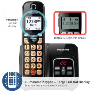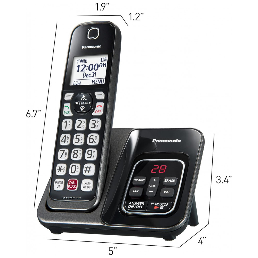 Telefone Sem Fio Panasonic KX-TGD830M Preto Metálico 1 Handset com Bloqueio Avançado de Chamadas Gravação Bidirecional Alerta Golpe Um Toque Secretária Digital ID Falante Bilíngue