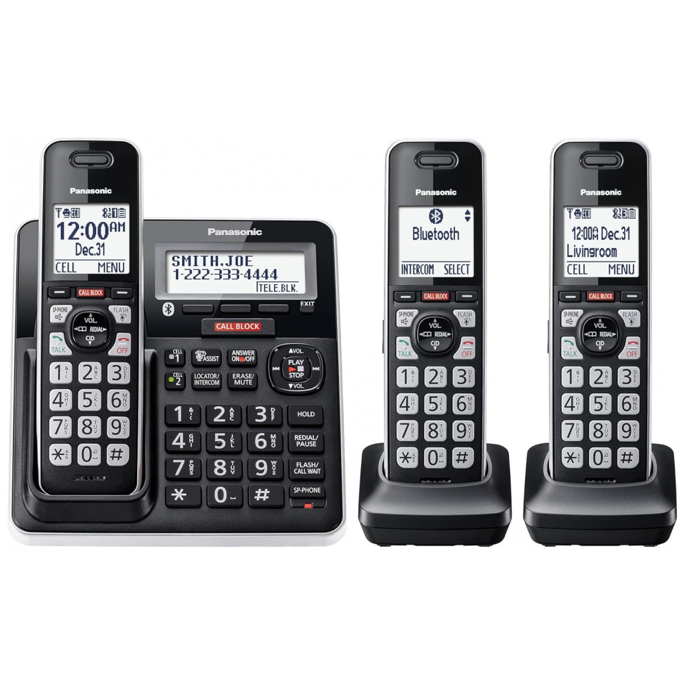 Telefone Sem Fio Panasonic KX-TGF973B Preto/Prata com 3 Handsets Bloqueio Avançado de Chamadas Link2Cell Bluetooth Alerta Contra Golpes Gravação Bidirecional Secretária Digital