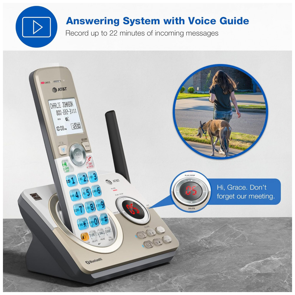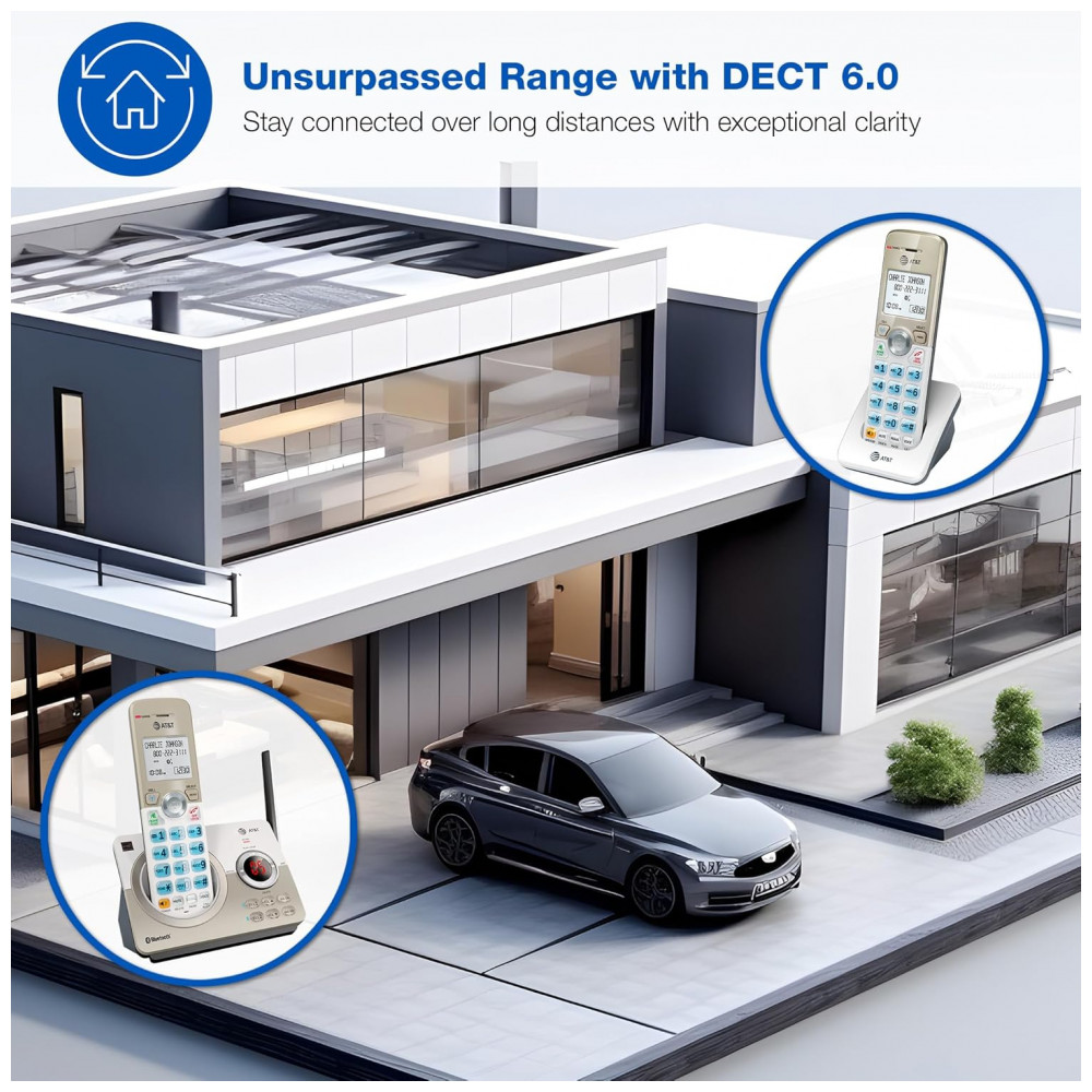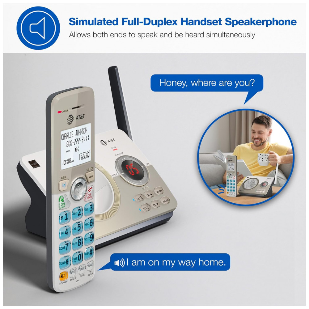 Telefone Sem Fio Residencial AT&T DL72219 DECT 6.0 Branco com 2 Handsets Tela Retroiluminada 18″ Bloqueio de Chamadas Inteligente Sistema de Atendimento Digital Conexão Bluetooth