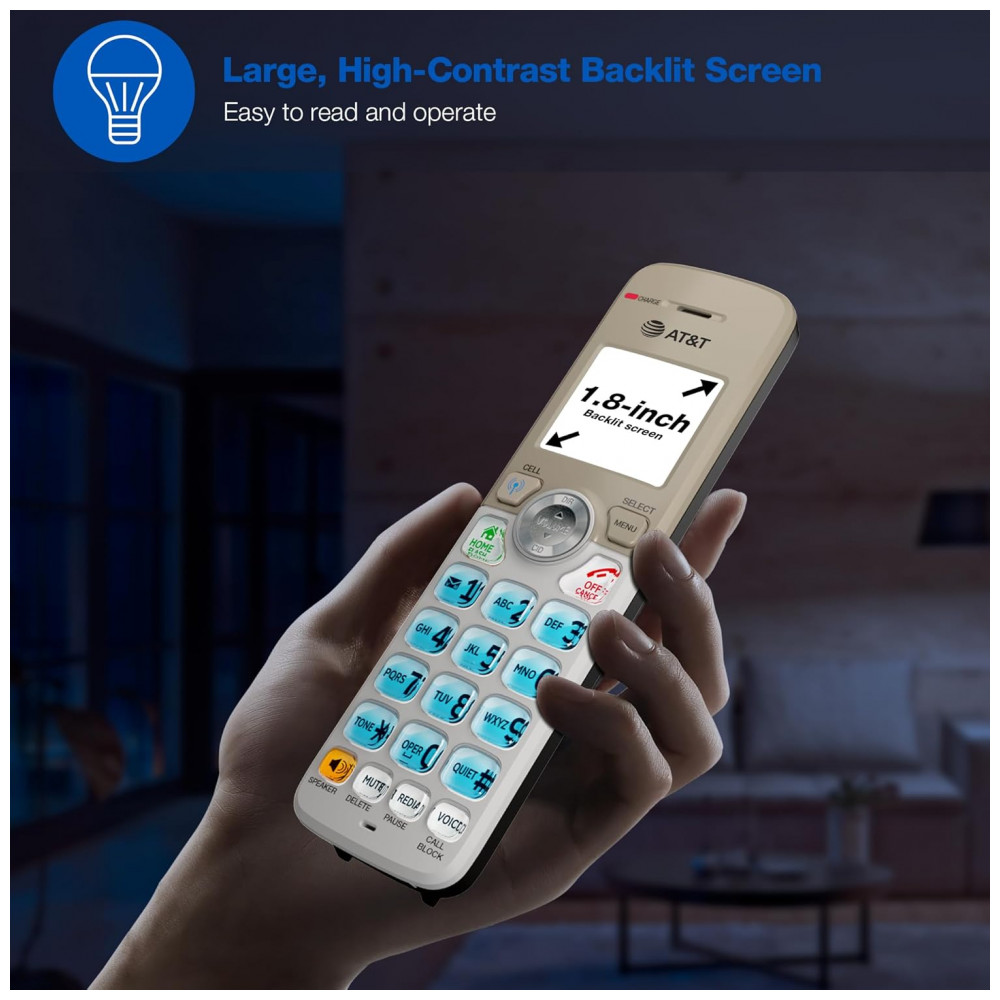 O telefone sem fio AT&T DL72219 utiliza tecnologia digital DECT 6.0, garantindo alta qualidade de áudio com mínima interferência e alcance ampliado graças ao design avançado da antena e recursos de filtragem de ruído. O conjunto inclui 2 handsets com tela LCD retroiluminada de 1,8 polegadas, com texto de alto contraste e teclado iluminado para uso em ambientes com baixa luminosidade. Equipado com bloqueador inteligente de chamadas, filtra chamadas indesejadas automaticamente, mesmo a primeira vez que elas ocorrem.