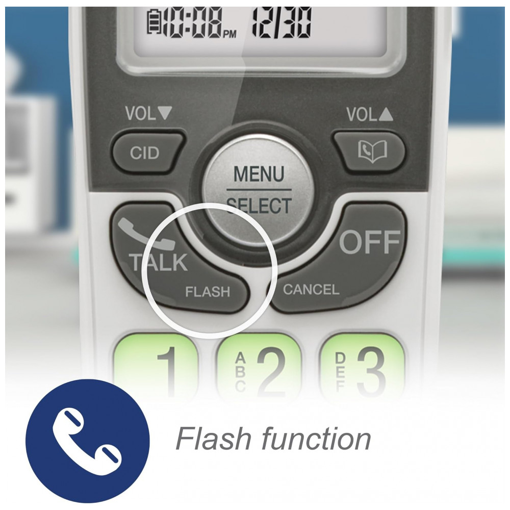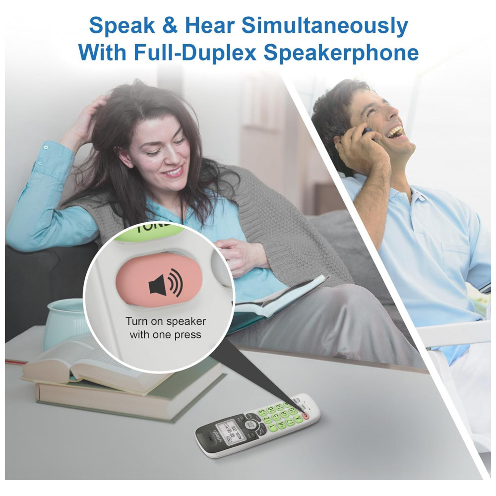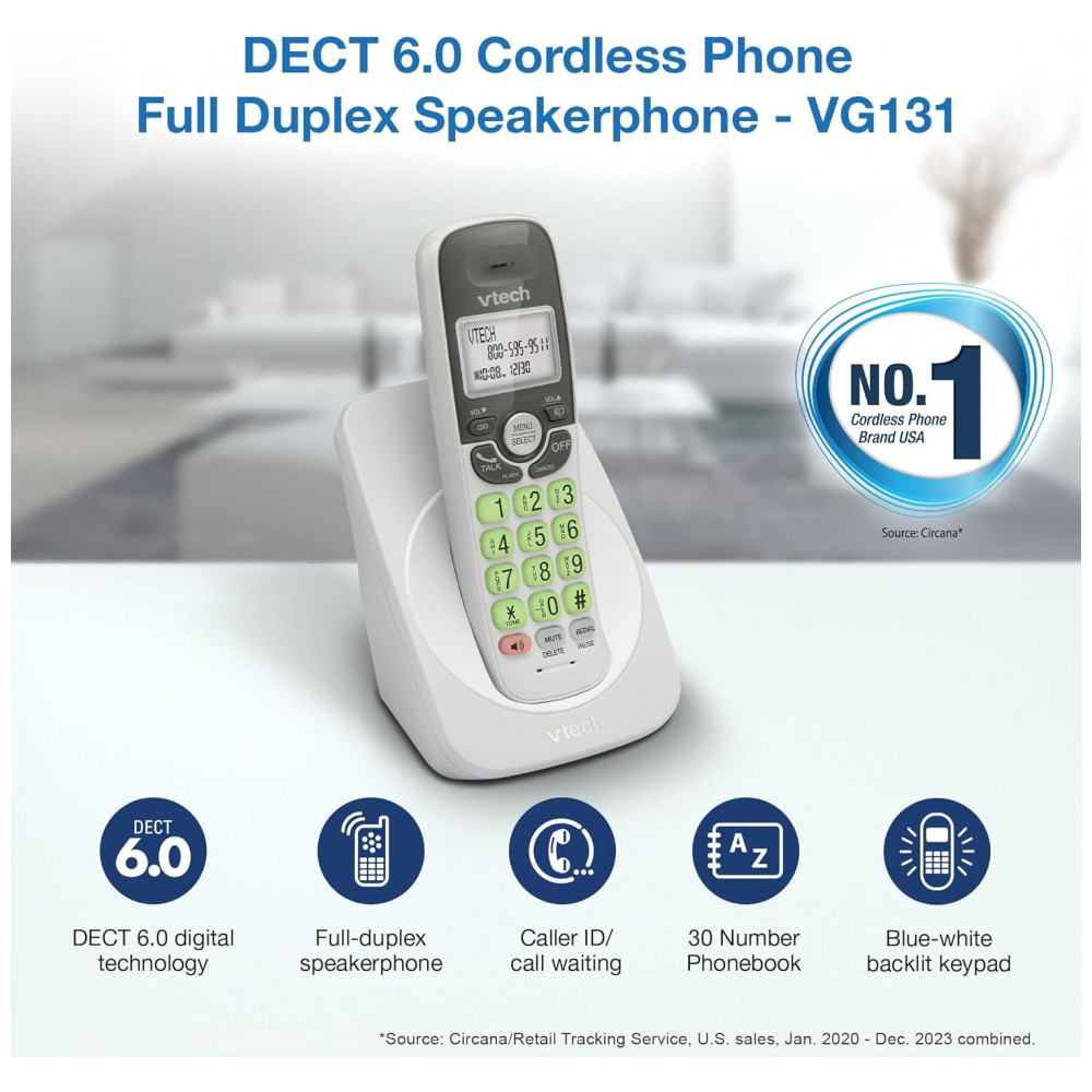 O telefone sem fio VTech VG131 opera com tecnologia DECT 6.0 para transmissão segura de sinal, oferecendo alcance estável até 300 metros em área externa e clareza de áudio sem interferências. O viva-duplo full-duplex no terminal portátil permite comunicação bidirecional simultânea entre interlocutores.