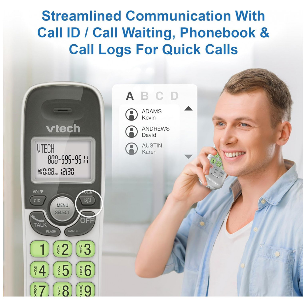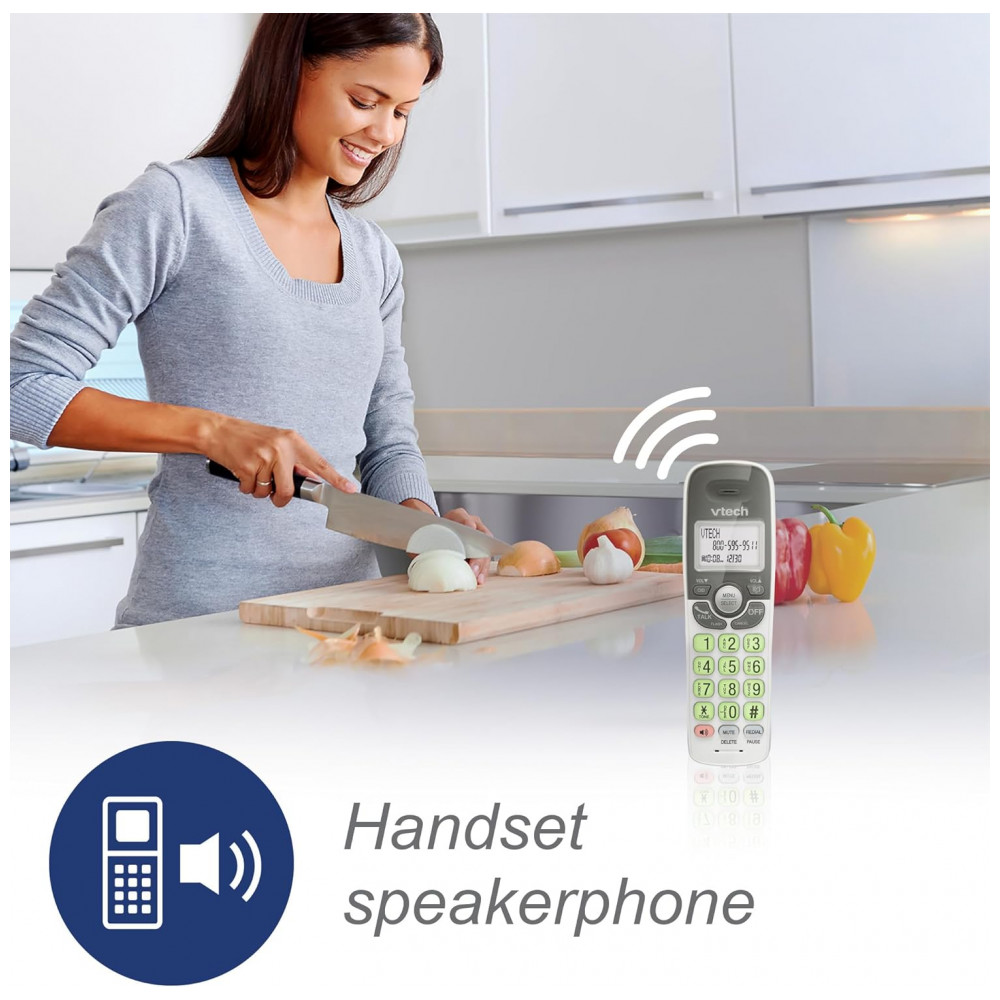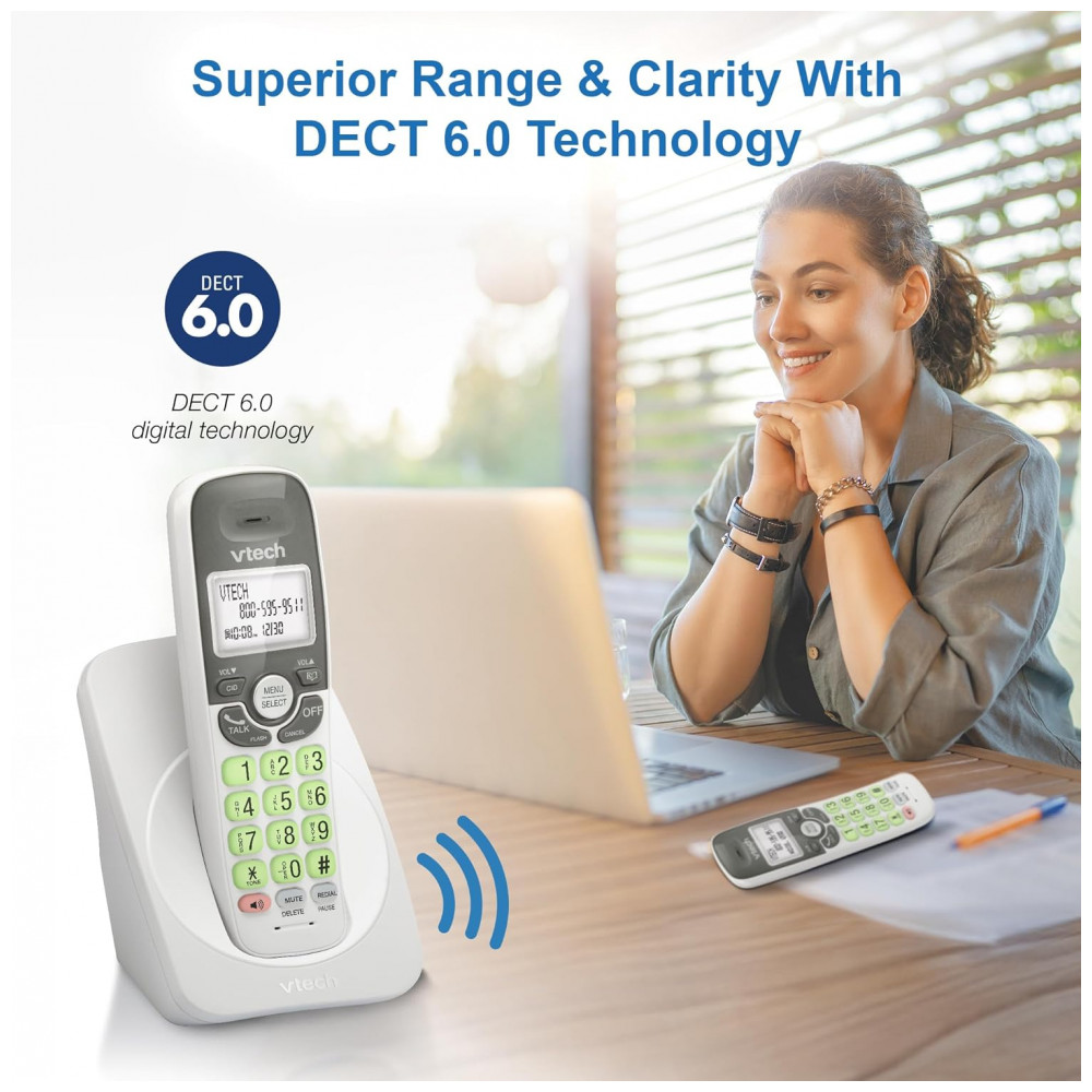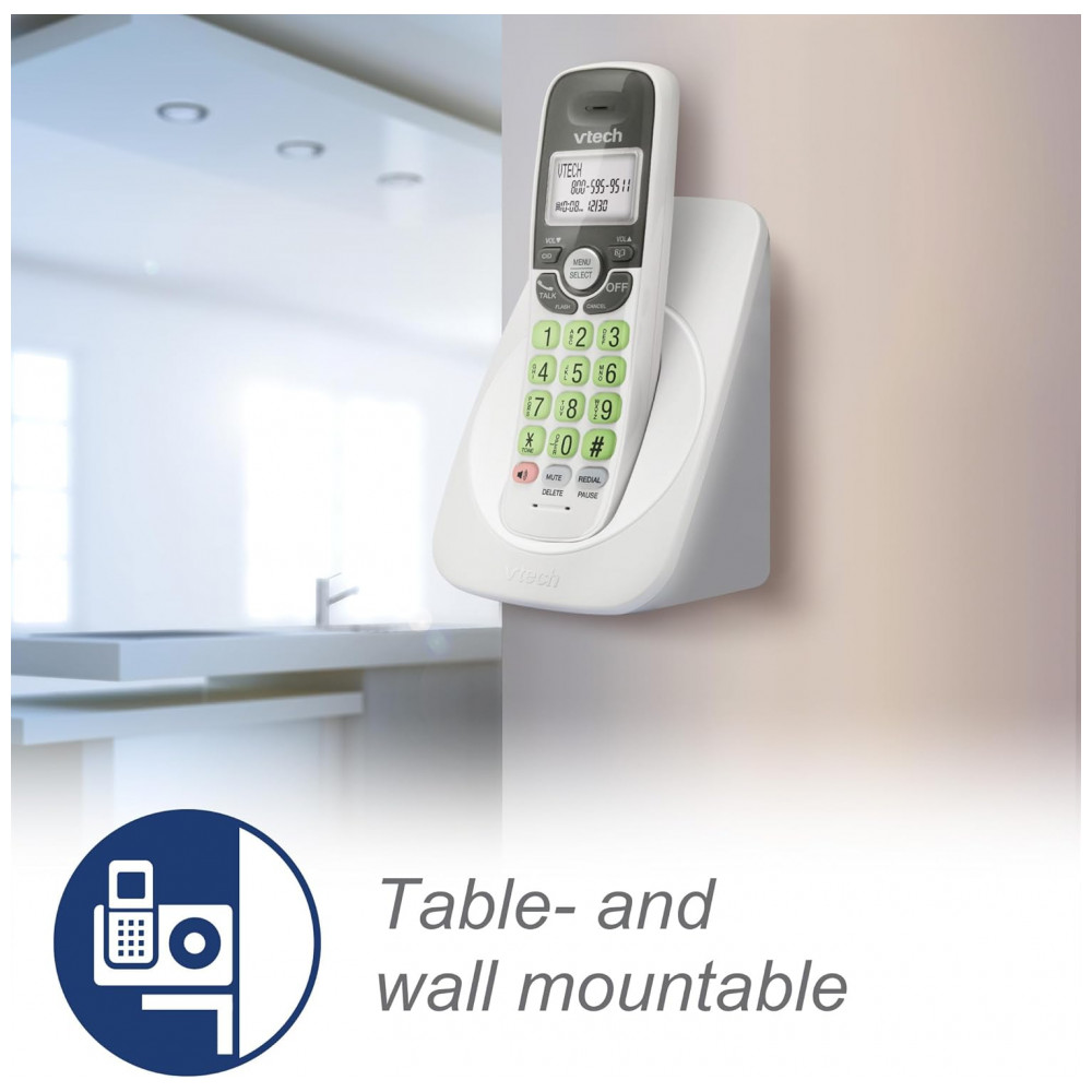 Telefone Sem Fio VTech Branco DECT 6.0 Viva-Duplo Full-Duplex Display Retroiluminado Teclado Iluminado ID Chamadas Montagem Parede VG131