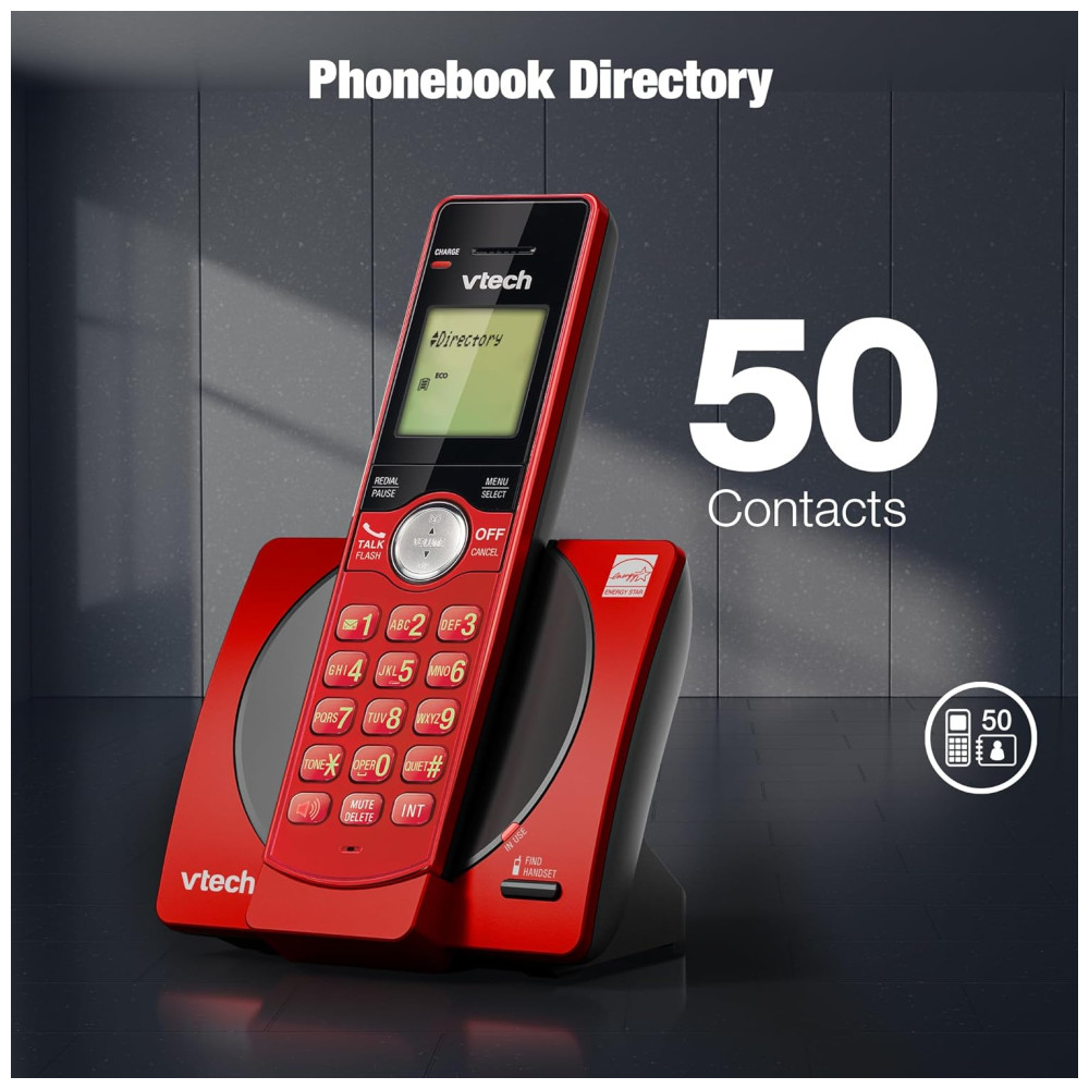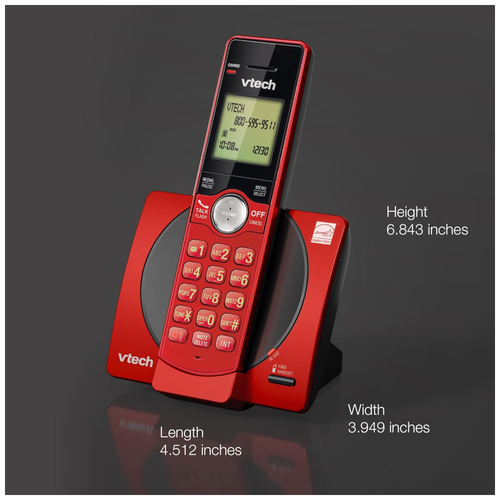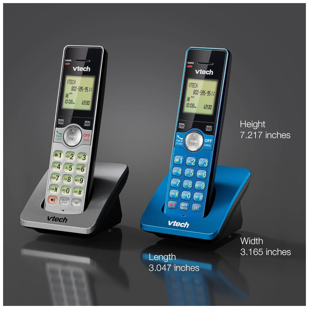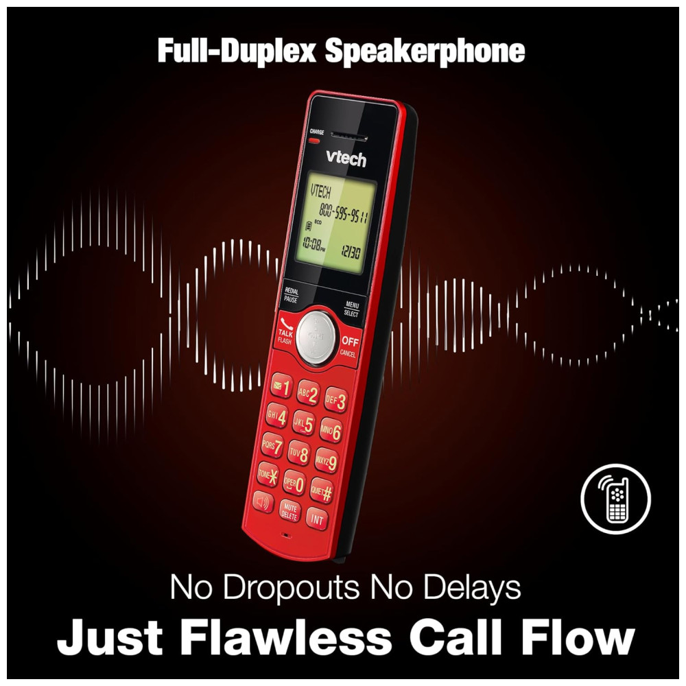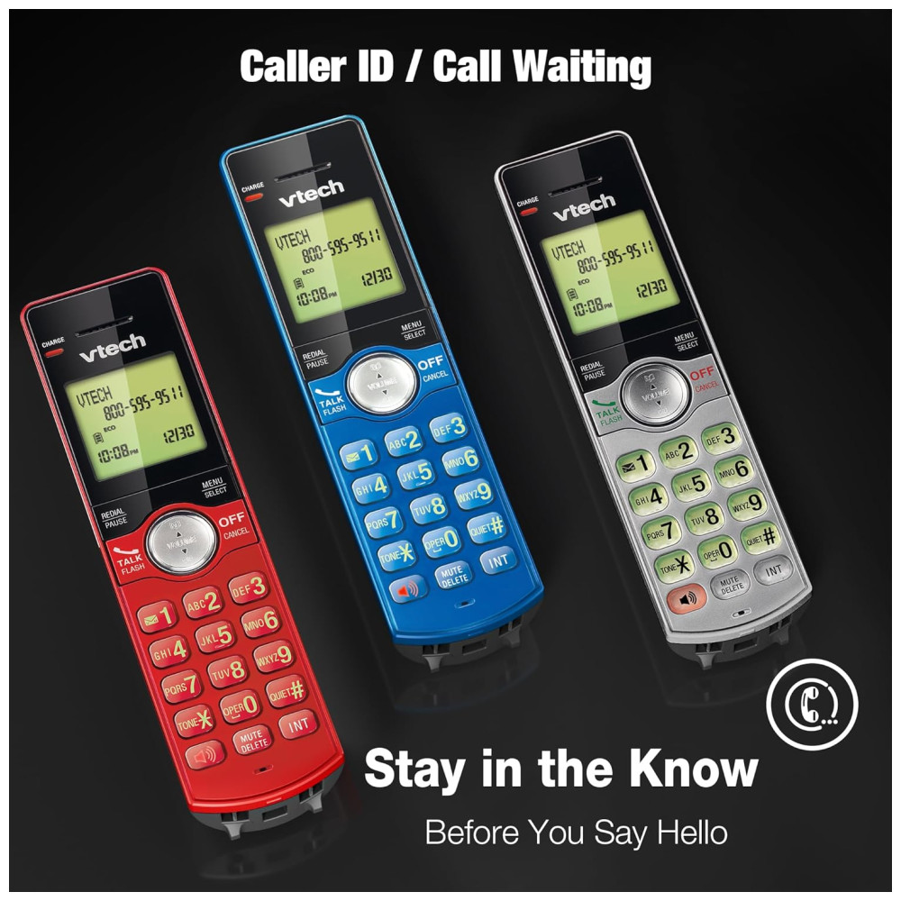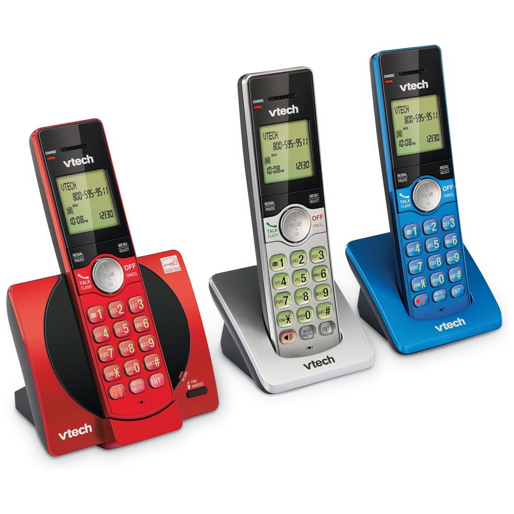 Telefone sem fio VTech com 3 ramais para casa identificador de chamadas e viva-voz modo ECO montagem na parede – Vermelho/Azul/Cinza
