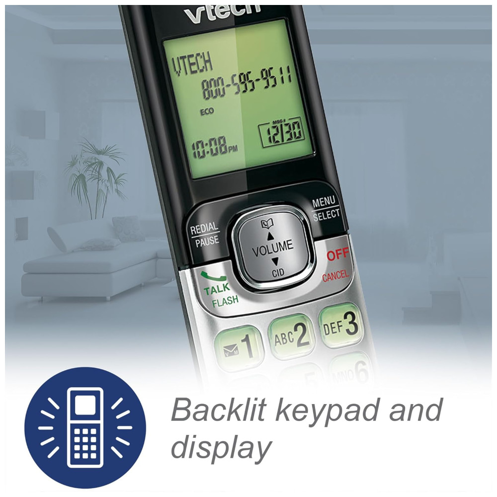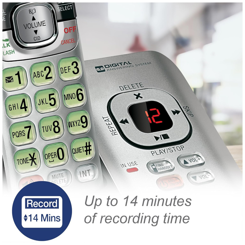 O telefone sem fio VTech CS65295 foi projetado para aprimorar sua experiência de chamadas. Monitore chamadas com identificador de chamadas de 50 números e chamada em espera. Mantenha-se informado com indicador de mensagens de voz e 14 minutos de tempo de gravação. Conecte-se facilmente com chamadas perdidas usando o rediscagem dos últimos dez números. Desfrute da conveniência do viva-voz. Garanta comunicação clara com total compatibilidade com aparelho auditivo. Inclui suporte para montagem na parede, otimizando a configuração do telefone em sua casa. Este telefone permite armazenar até 50 chamadas, exibindo nome, número, horário e data das chamadas recebidas. Possui viva-voz para conversas sem as mãos. O teclado retroiluminado e a tela LCD proporcionam visibilidade aprimorada em ambientes com pouca luz. Tecnologia de economia de energia Eco Mode para melhor desempenho da bateria. Transmissão de sinais seguros via DECT 6.0 garante som cristalino, livre de interferências, e alcance estável de até 304 metros ao ar livre.