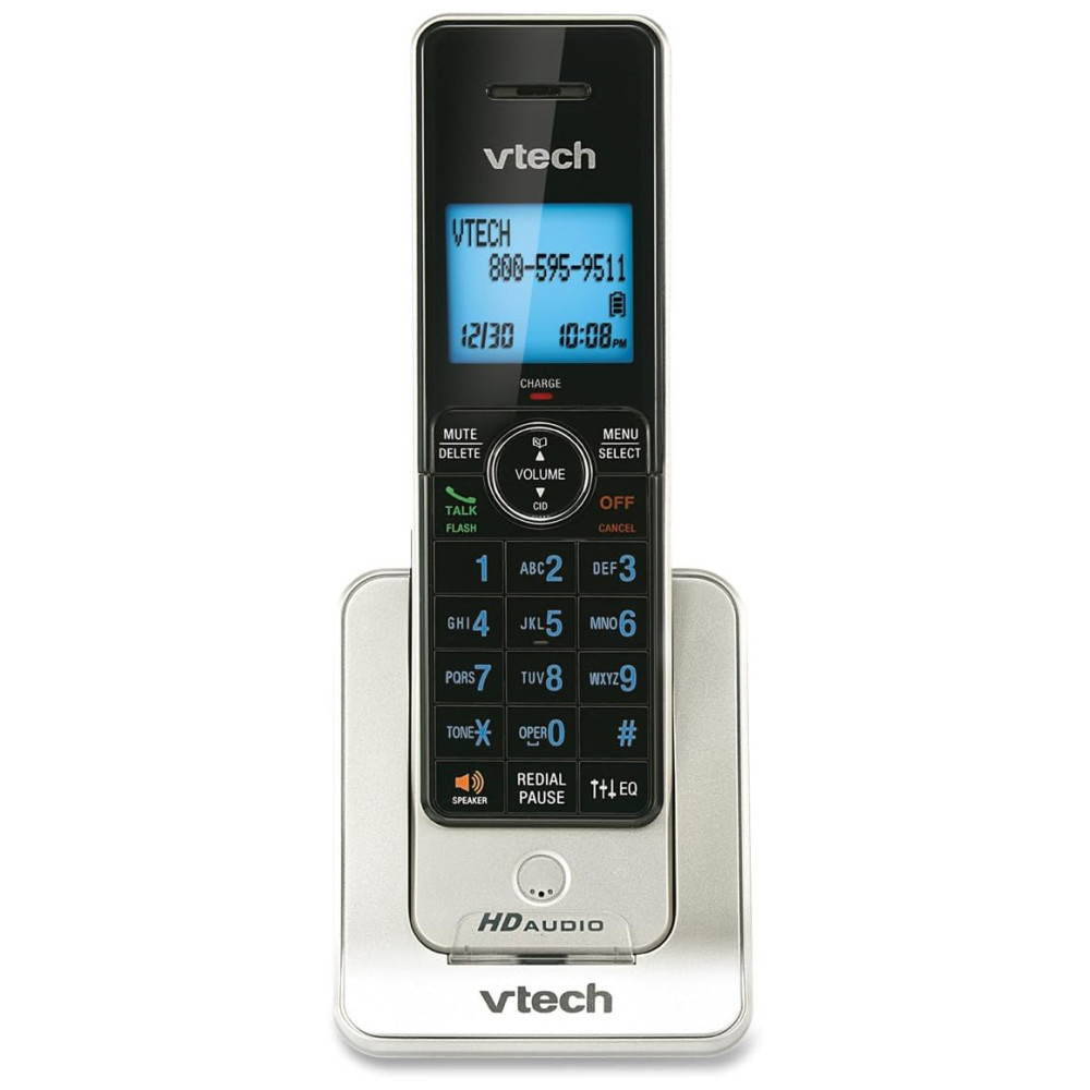 VTech LS6405 Telefone acessório para telefone sem fio DECT 6.0, preto , prateado, 1 acessório Aparelho acessório móvel expande seus sistemas telefônicos Vtech DECT 6.0 LS6425, LS6426, LS6475 ou LS6476. O monofone não pode ser de forma independente. A tecnologia digital DECT 6.0 oferece a melhor qualidade de som, segurança e alcance em telefones sem fio. O telefone oferece conversas claras e livres de interferências e não interfere nas redes sem fio e outros dispositivos eletrônicos. A banda de frequência foi estendida permitindo que o sinal seja reproduzido e sintonizado para um som mais claro e completo. A segurança digital protege você contra roubo de identidade digitalizando e criptografando suas chamadas para evitar a interceptação. O telefone inclui identificação de chamadas, viva voz, áudio HD, teclado retroiluminado azul e visor, controle de volume do monofone, rediscagem do último número, localizador de página , monofone, toques selecionáveis e um elegante acabamento metálico. O diretório de 50 nomes , números da lista telefônica permite que você zene e disque facilmente os números chamados com freqência. Os prompts de idioma incluem inglês, espanhol e francês