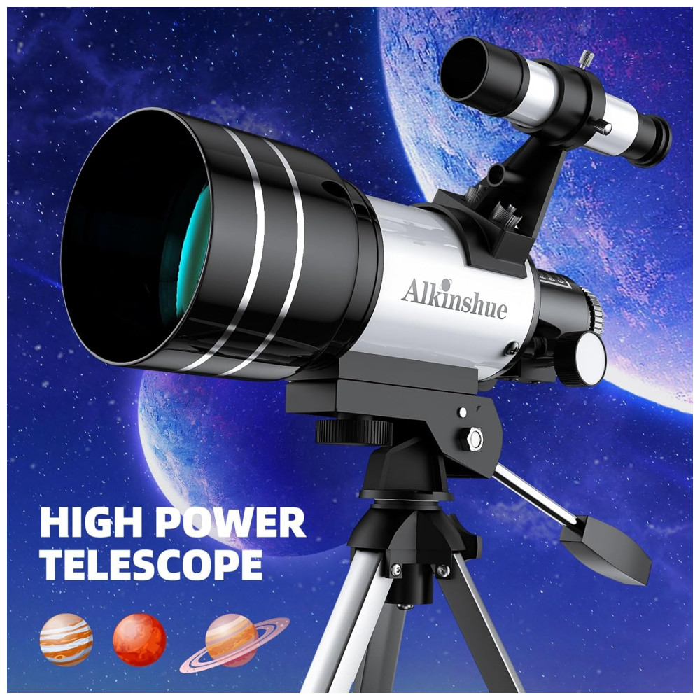 Telescópio Astronômico 150x com Tripé Ajustável Adaptador de Celular e Controle Remoto Alkinshue Branco