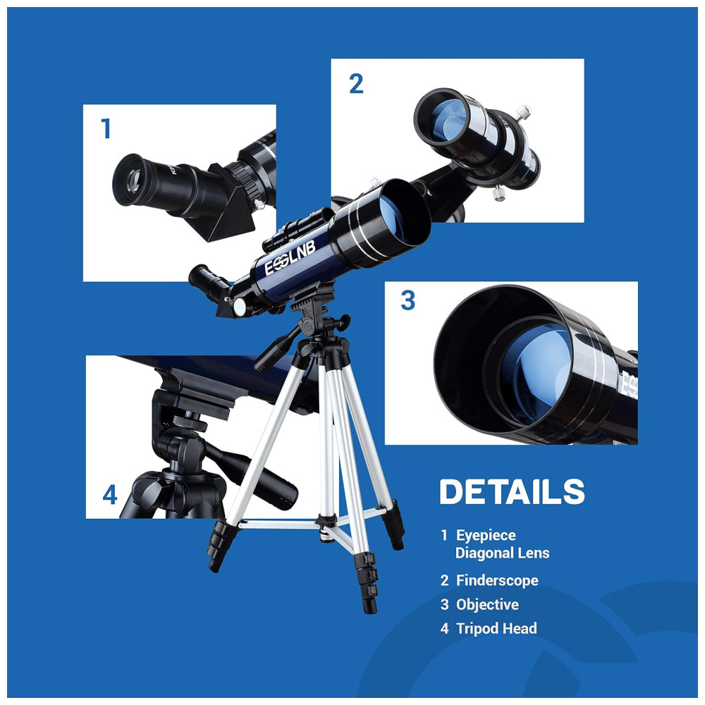 Telescópio Astronômico 15×180 com Tripé Ajustável e Adaptador de Celular ESSLNB 36070 Azul
