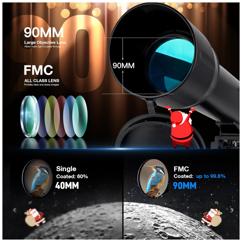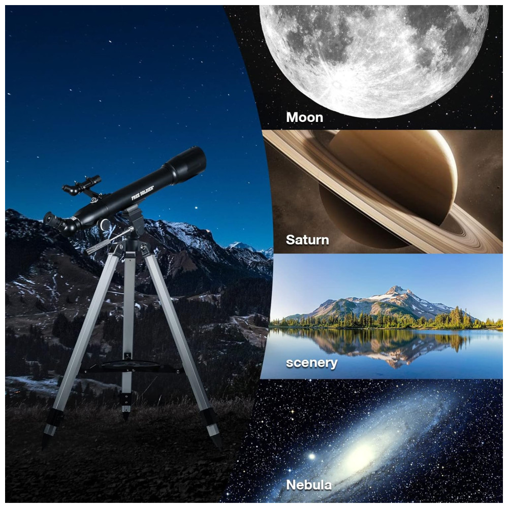 Presente de astronomia com óptica superiorO telescópio para adultos possui uma distância focal de e abertura de . A lente objetiva de coleta mais luz do que o telescópio de , e , então a imagem parece mais brilhante na ocular. um presente de agradecimento atencioso