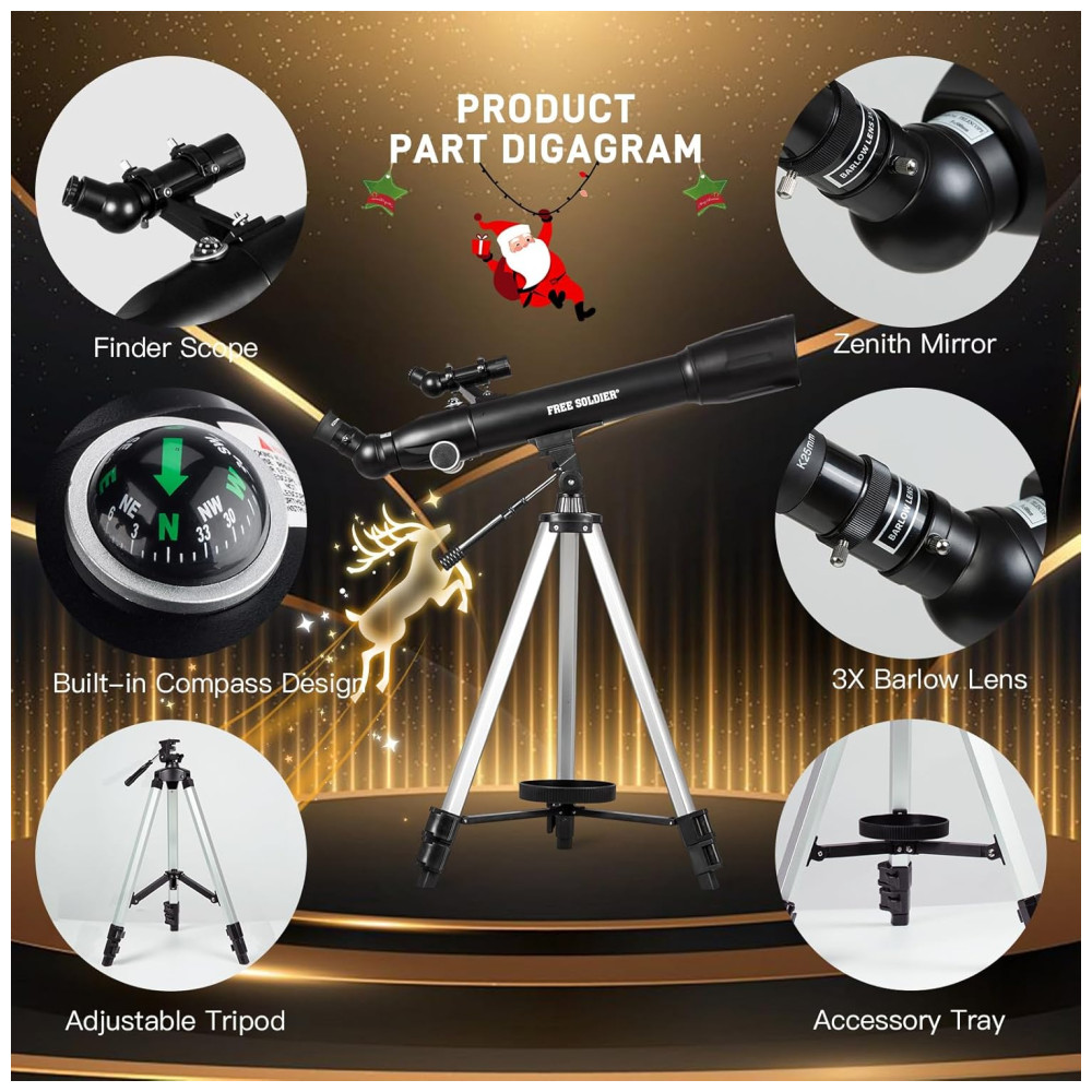 Telescópio Astronômico 233x com Oculares Avançadas FREE SOLDIER Preto