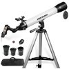 Fácil de usar e transportar O telescópio é fácil de montar, mesmo para iniciantes em astronomia e crianças. Temos um manual de instalação detalhado e instruções de instalação de vídeo para ajudá lo. Nosso telescópio refrator tem uma bolsa e um tripé ajustável. Todos os acessórios podem ser embalados na bolsa, o que é conveniente para você realizar. Uma mochila de transporte torna mais fácil para você transportar e capturar imagens incríveis.