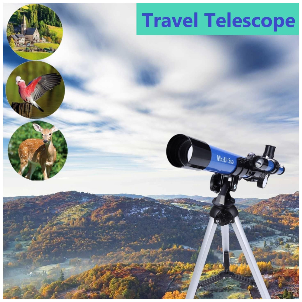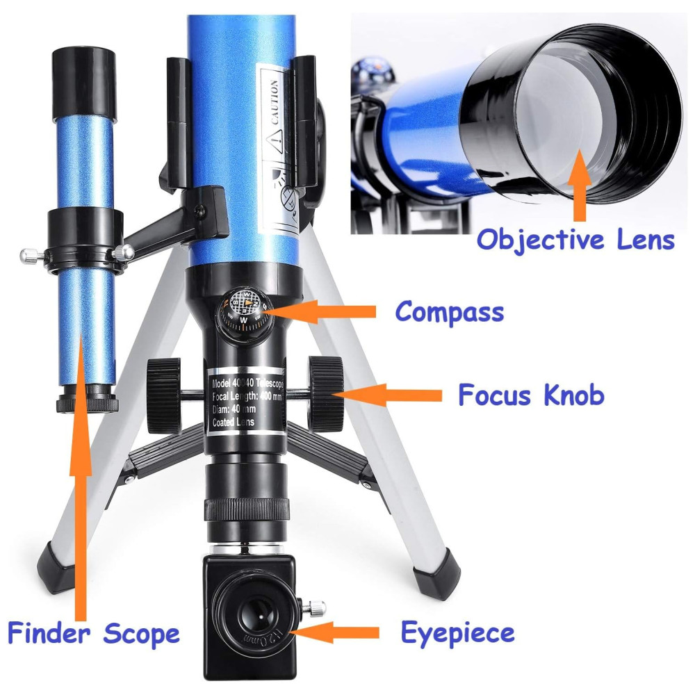 Telescópio Refrator Portátil com Escopo Finder O presente perfeito para crianças e iniciantes em astronomia para explorar o universo e a natureza, a Óptica de Alta Qualidade torna sua visão mais brilhante, mais clara e oferece imagens nítidas.