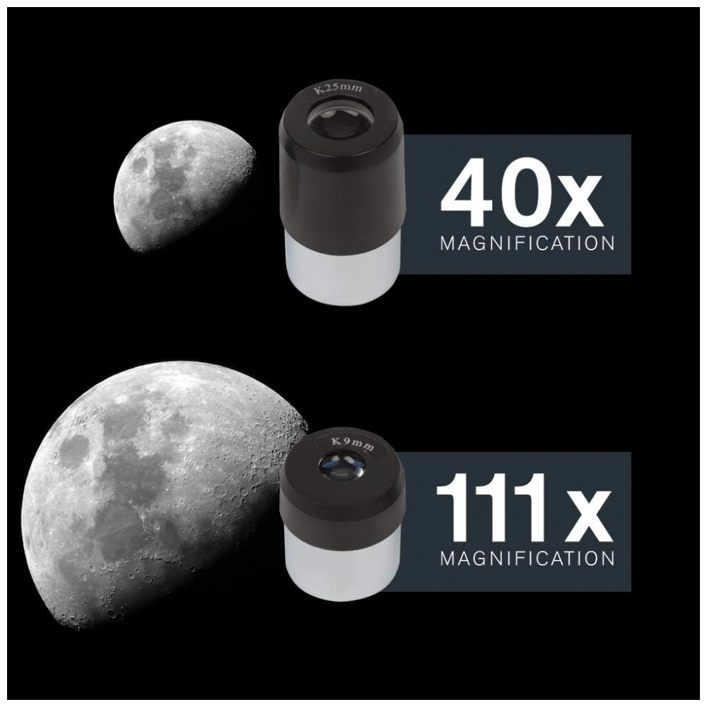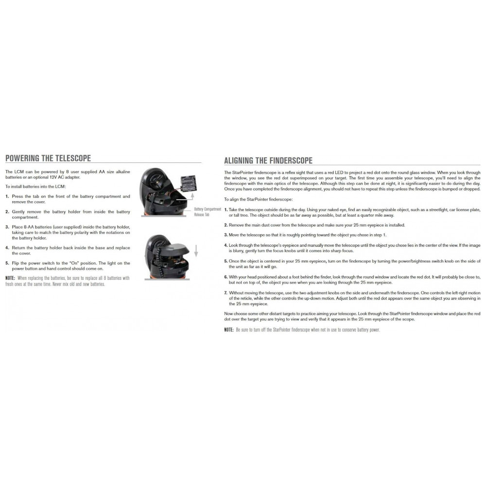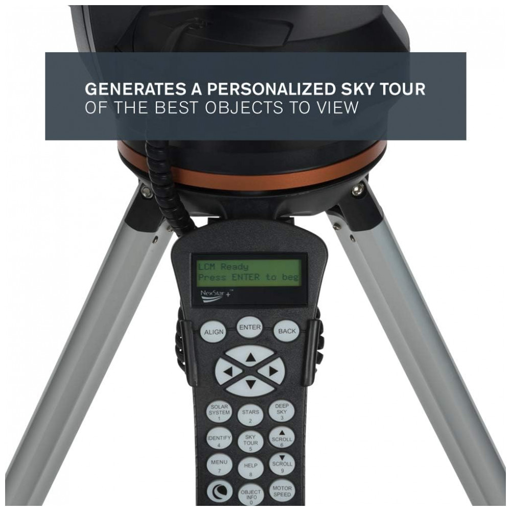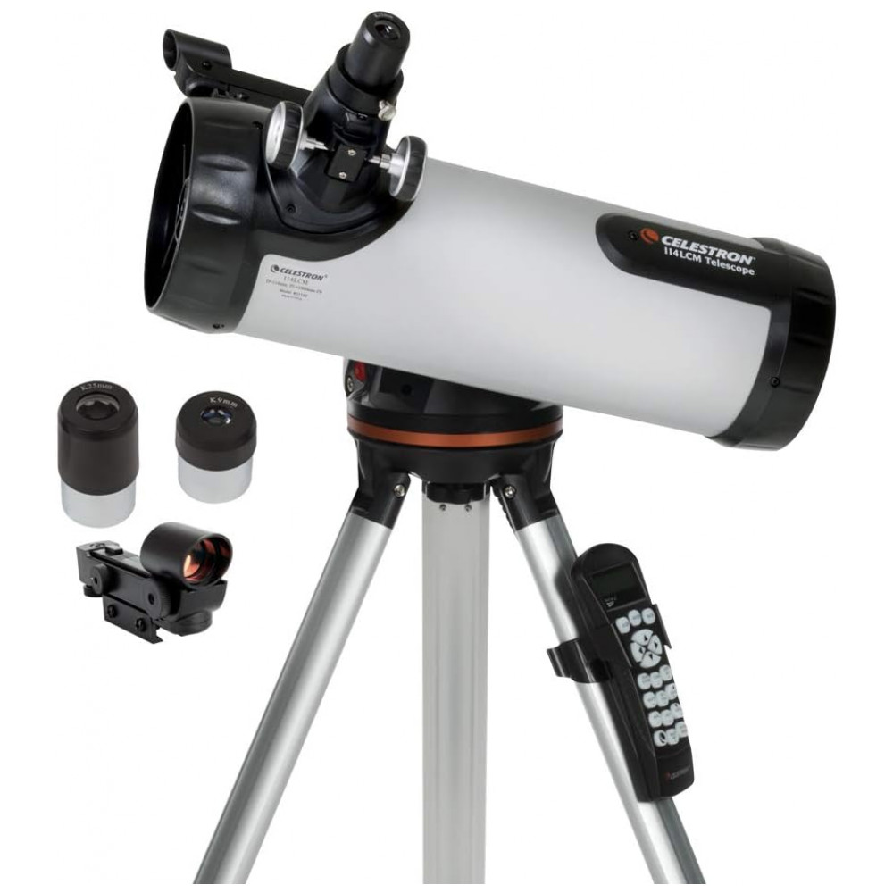 TUDO O QUE VOCÊ PRECISA O telescópio Celestron LCM vem com tudo o que você precisa para observar as estrelas, incluindo um tripé de altura total, 2 oculares de alta qualidade e e um localizador de ponto vermelho StarPointer.