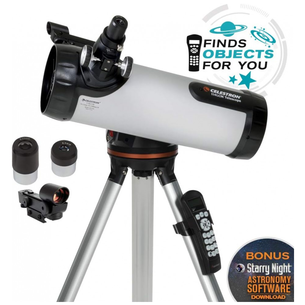 SOFTWARE GRATUITO DE NOITE ESTRELADA DE BÔNUS Este Telescópio Computadorizado Celestron 114LCM inclui um download GRATUITO de um dos programas de software de astronomia mais avaliados pelo consumidor. Simule o céu noturno de qualquer local da Terra ou planeje sua próxima sessão de observação