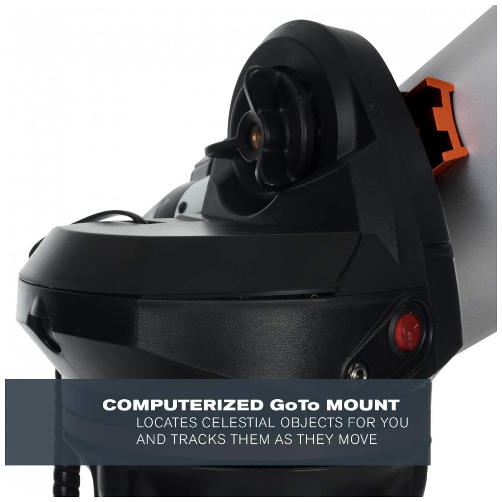 TELESCÓPIO AUTOMÁTICO COMPUTADORIZADO O Telescópio Newtoniano Computadorizado Celestron 114LCM com todas as ópticas de vidro pode localizar automaticamente 4.000 objetos celestes com sua montagem GoTo computadorizada.