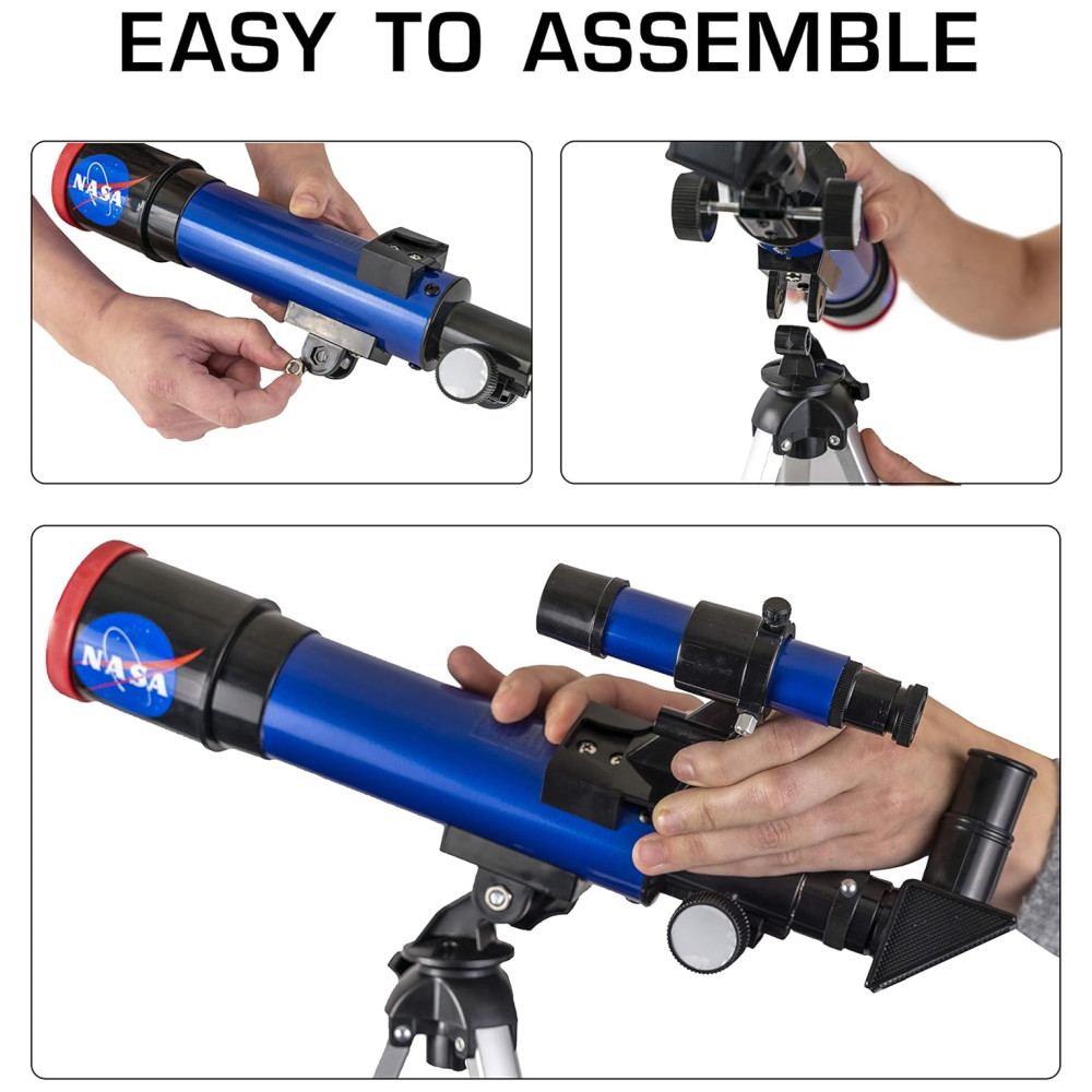 PERFEITO PARA INICIANTES Este telescópio é fácil de montar e usar, tornando o ideal para jovens cientistas e pais desfrutarem juntos