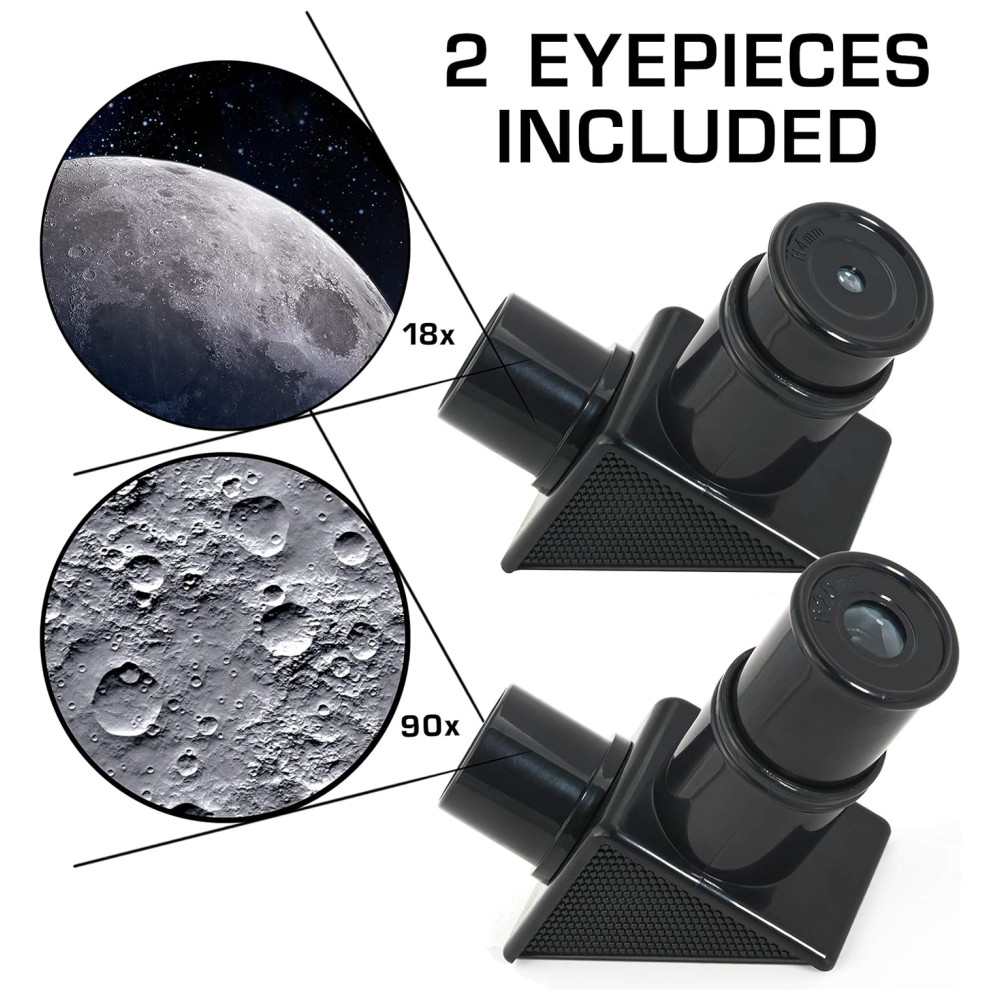 VIDRO ÓTICO DE ALTA QUALIDADE E ESCOPO DO FINDER Este telescópio fácil de usar vem com um visor do localizador, baixa potência e oculares de alta potência quando usada corretamente, essa combinação permitirá que seu filho localize facilmente a lua e, em seguida, amplie para uma visão de perto.