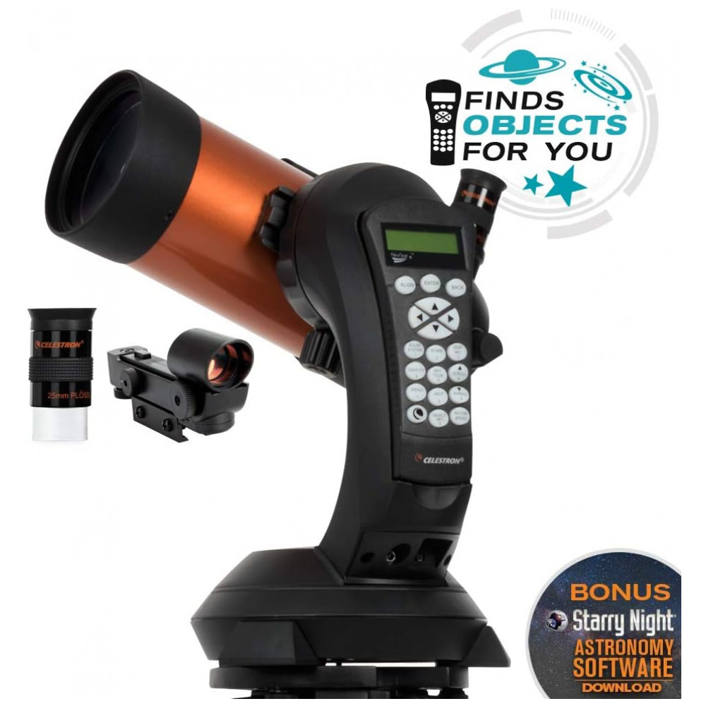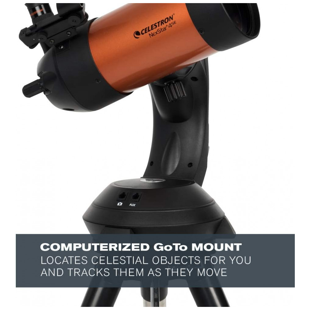 TELESCÓPIO COMPUTADORIZADO NEXSTAR 4SE O icônico telescópio de tubo laranja da Celestron combina ótica Maksutov Cassegrian de 4 com tecnologia atualizada e os recursos mais recentes para uma incrível experiência de observação de estrelas para iniciantes e observadores experientes.