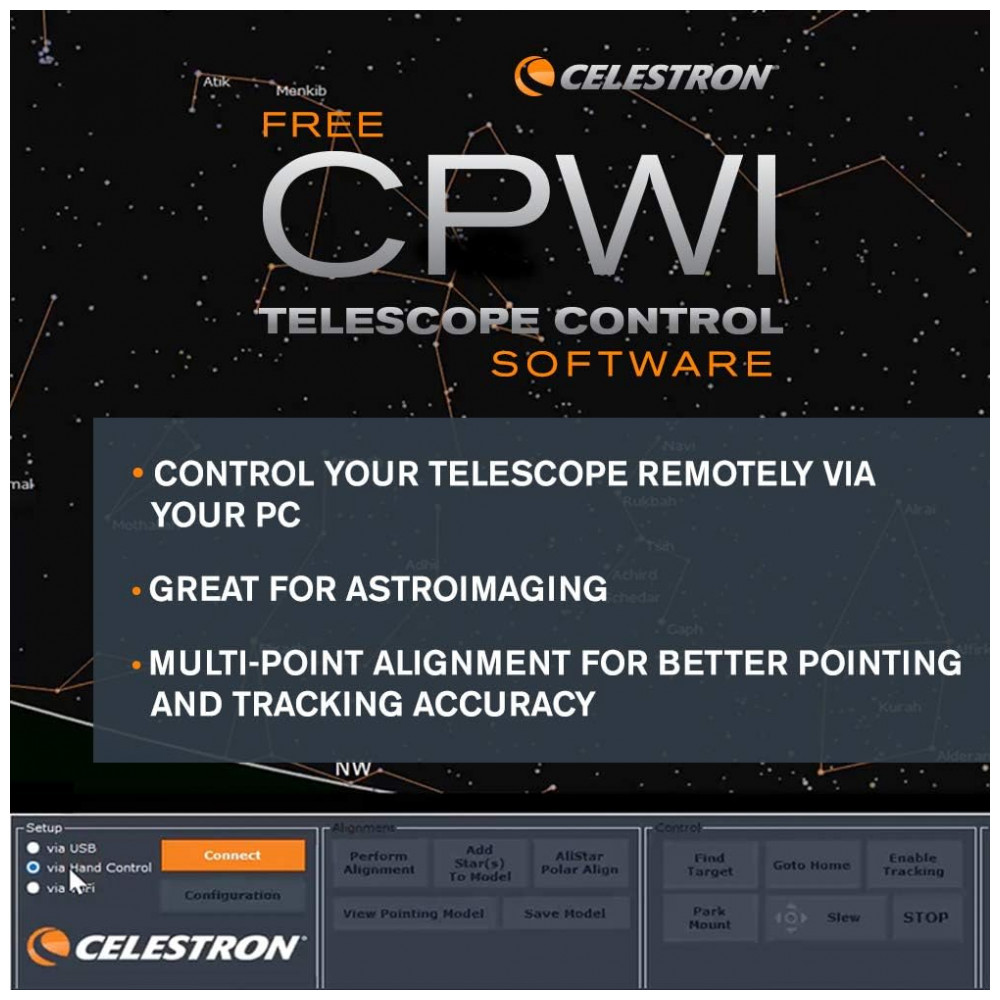 MONTAGEM GOTO TOTALMENTE AUTOMATIZADA Com um banco de dados de mais de 40.000 objetos celestes, a montagem GoTo do NexStar SE localiza e rastreia objetos para você. É o telescópio perfeito para iniciantes em astronomia. NexStar SE também é compatível com StarSense e SkyPortal WiFi.
