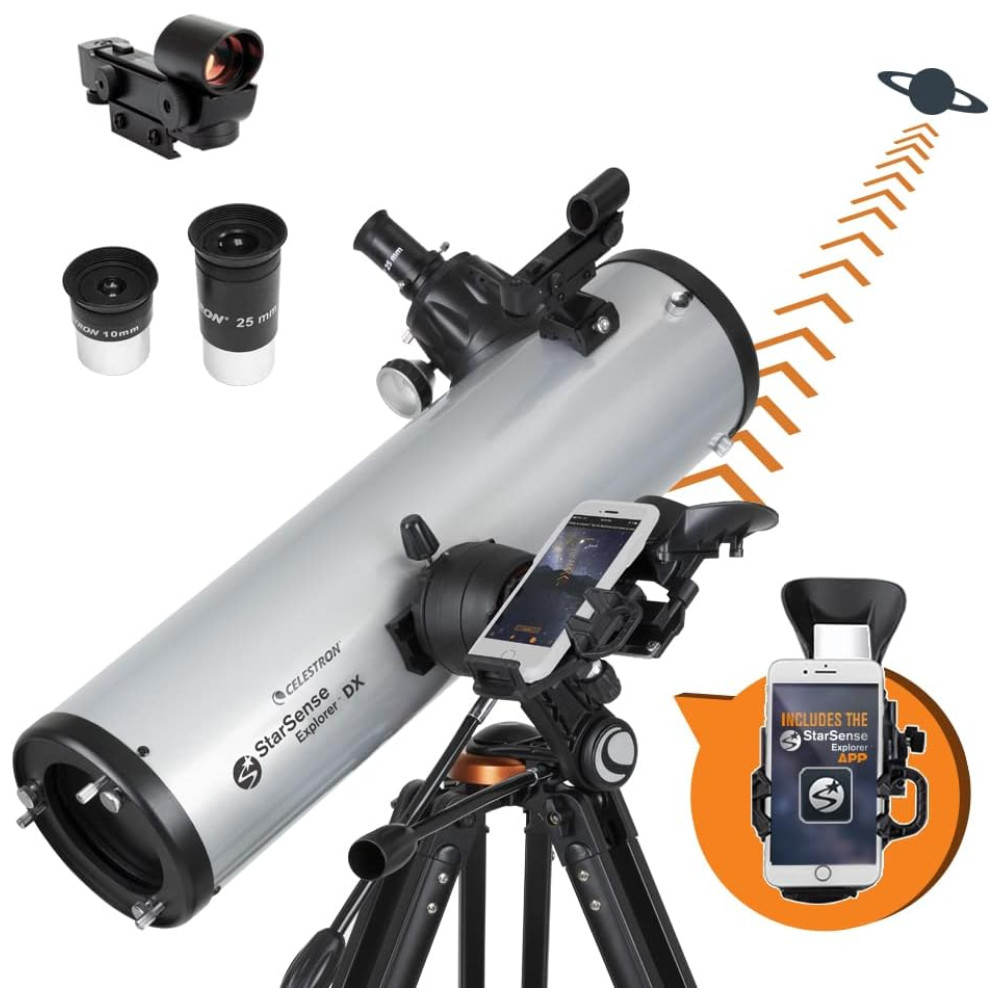 Telescópio Celestron StarSense Explorer DX 130AZ com App Ajuda a Localizar Estrelas Planetas e maisRefletor Newtoniano de 130mm.