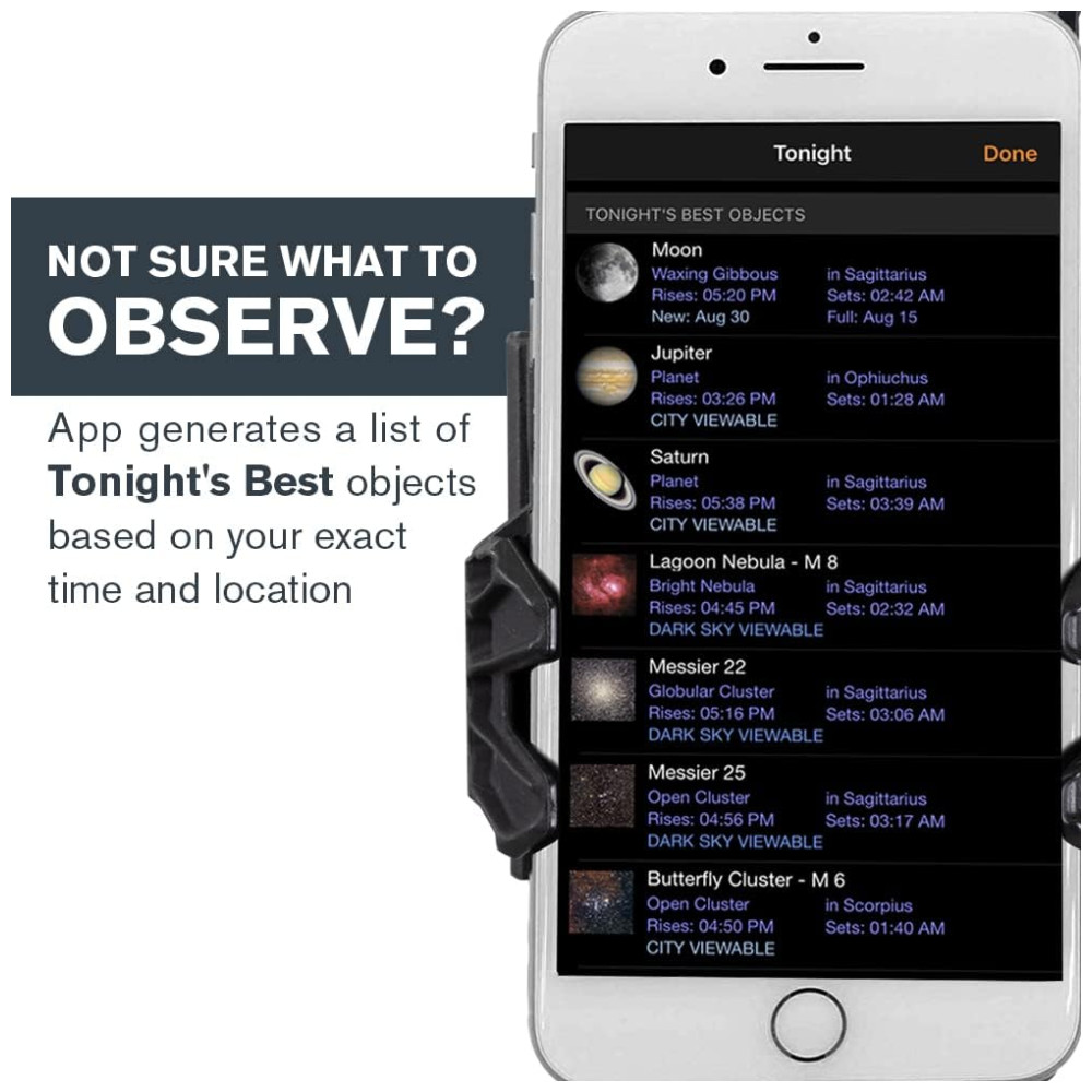 DESPERTE O PODER DO SEU SMARTPHONE: Deixe seu iPhone ou Android guiá-lo por uma viagem pelo céu noturno, sem necessidade de experiência com telescópios. Basta seguir as setas para localizar estrelas, planetas e mais.