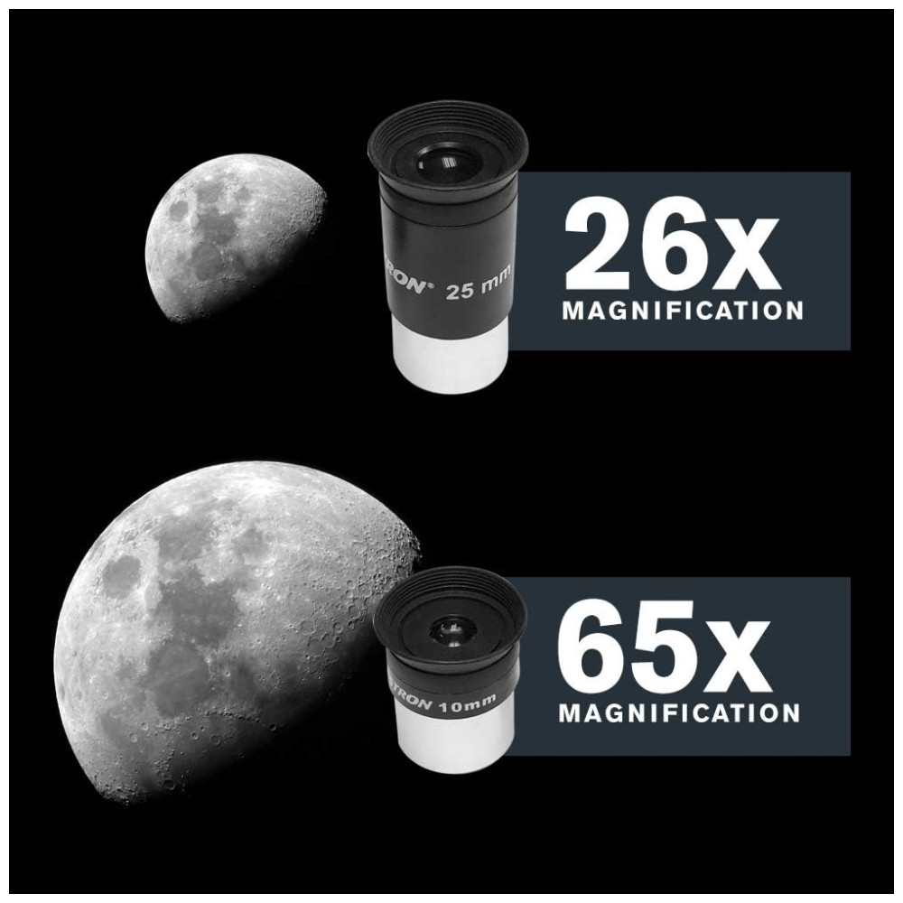 REFLETOR NEWTONIANO DE 130MM DE ALTA QUALIDADE: O espelho primário de 130 mm possui revestimentos altamente refletivos e capacidade de captação de luz suficiente para observar crateras na Lua, Júpiter, Saturno, Marte e objetos do céu profundo, como a Nebulosa de Órion, a Galáxia de Andrômeda e o Aglomerado Estelar das Plêiades.