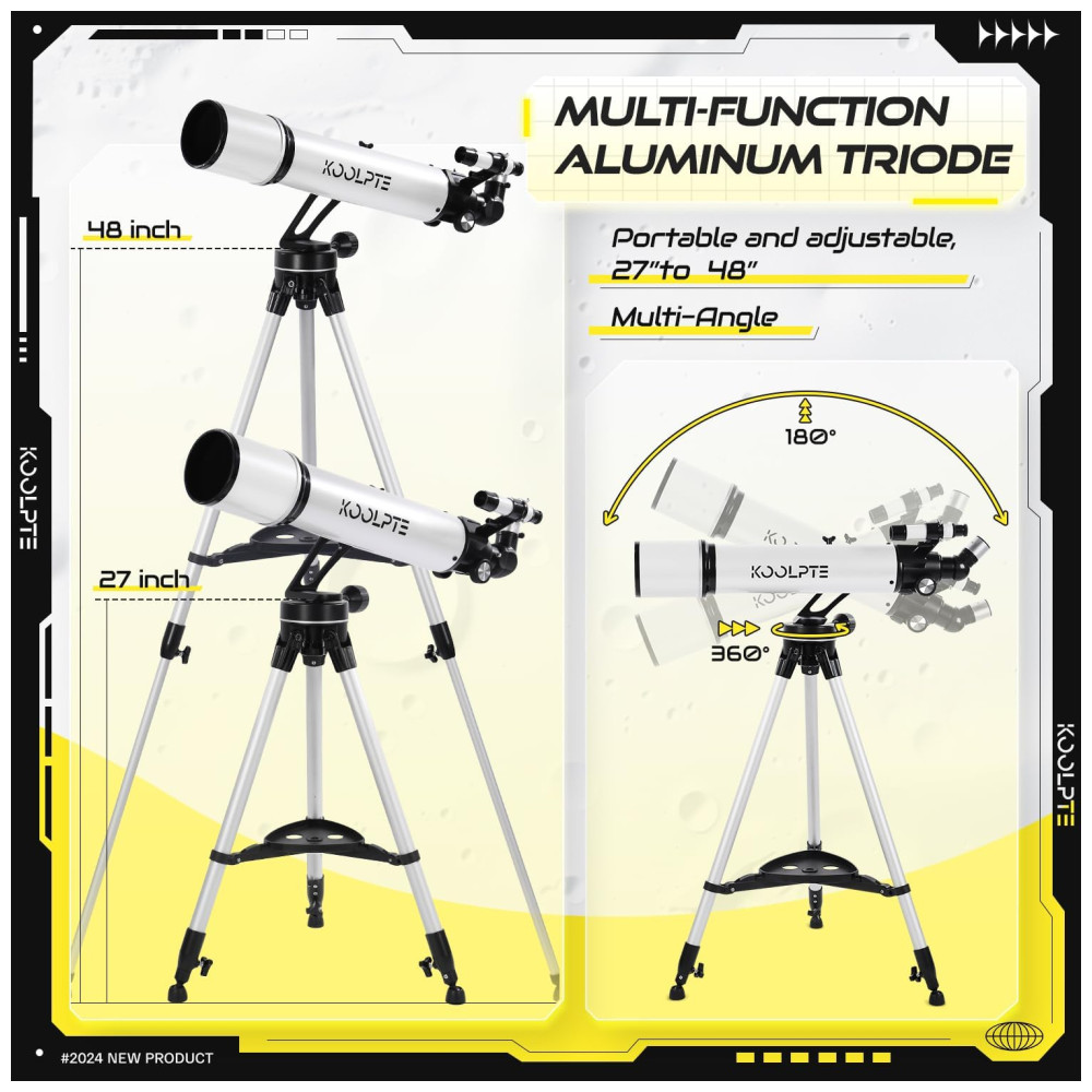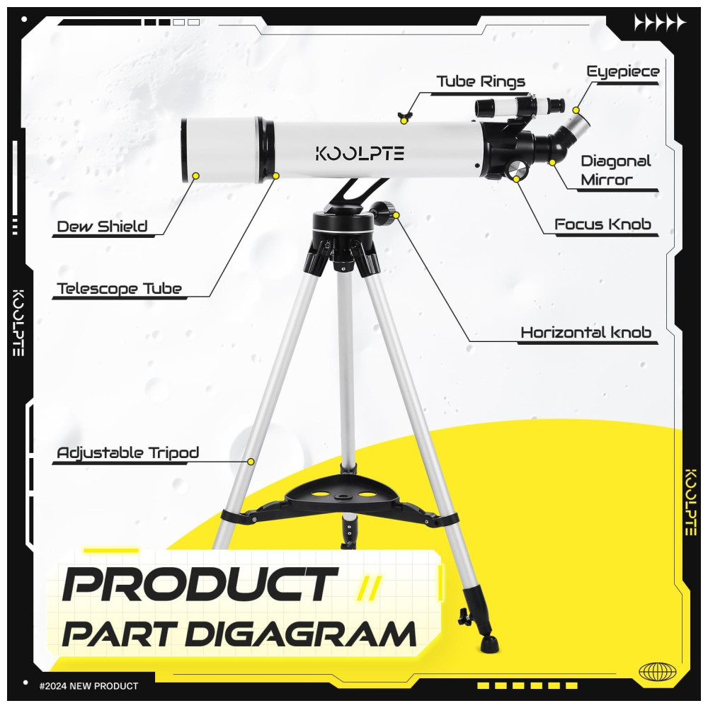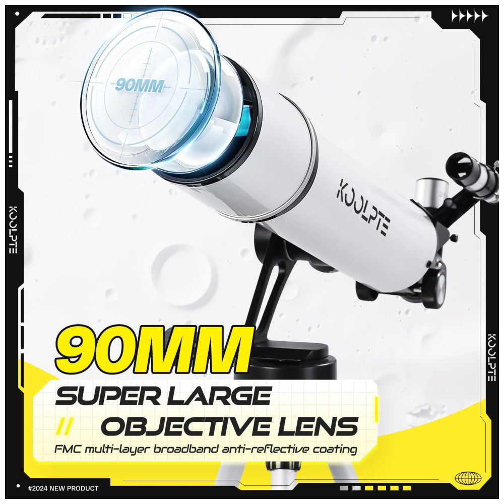 Telescópio de 90mm Diâmetro e 700mm com Base de Montagem Vertisteel AZ Altamente Ajustável Ideal para Adultos Astrônomos e Crianças Koolpte.