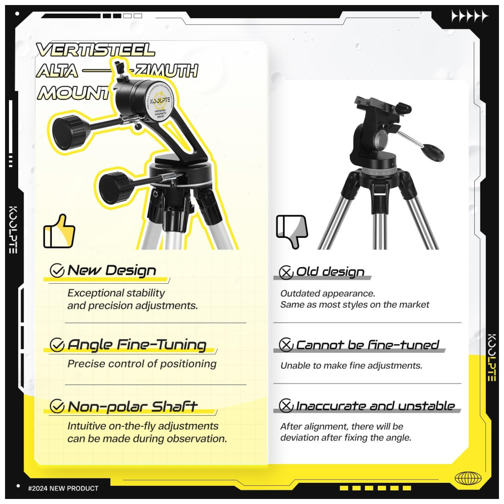 Ajuste Preciso: Equipado com uma montagem Vertisteel AZ, permite posicionamento preciso e parada livre em eixos não polares. O design de parada permite que a lente se mova suavemente com alta precisão, alcançando resultados ótimos de observação através de ajustes de alta precisão.