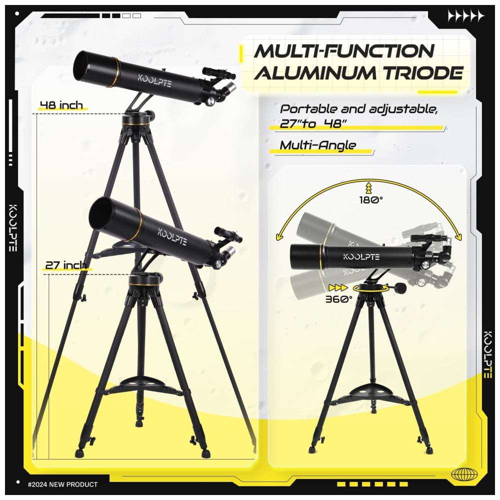 Telescópio de 90mm Diâmetro e 700mm para Entusiastas de Astronomia Adultos e Crianças com Base de Montagem Vertisteel AZ Koolpte.