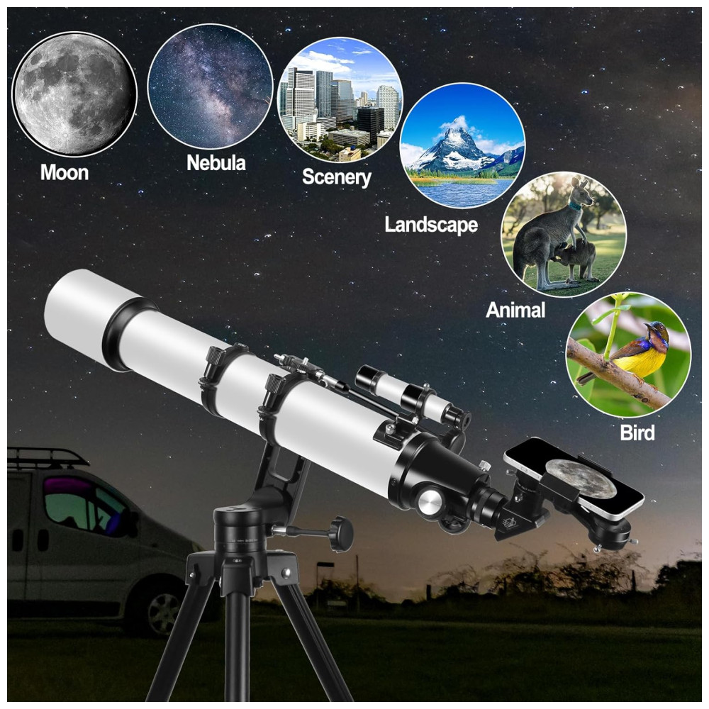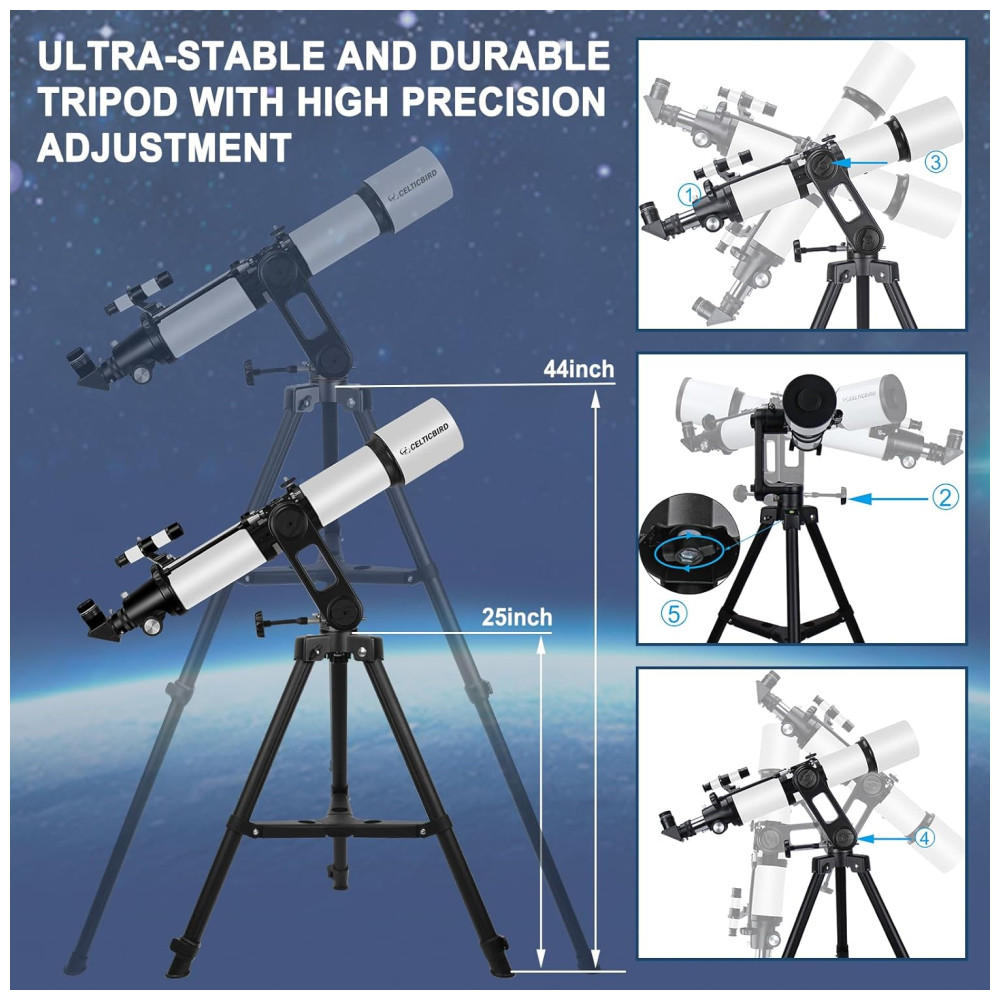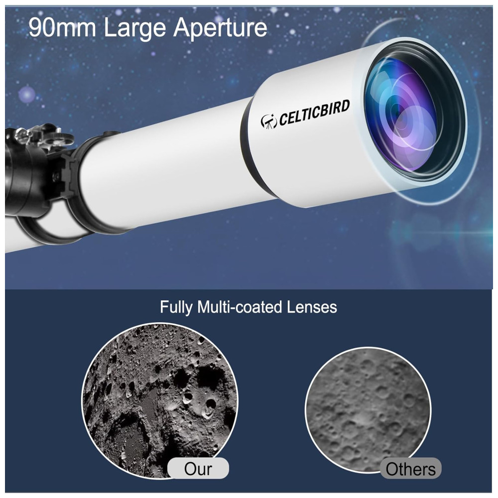 Telescópio para Adultos e Iniciantes Refrator de 90mm e 700mm com Ajuste de Alta Precisão Base Tripé Ultraestável Vertisteel AZCelticbird.