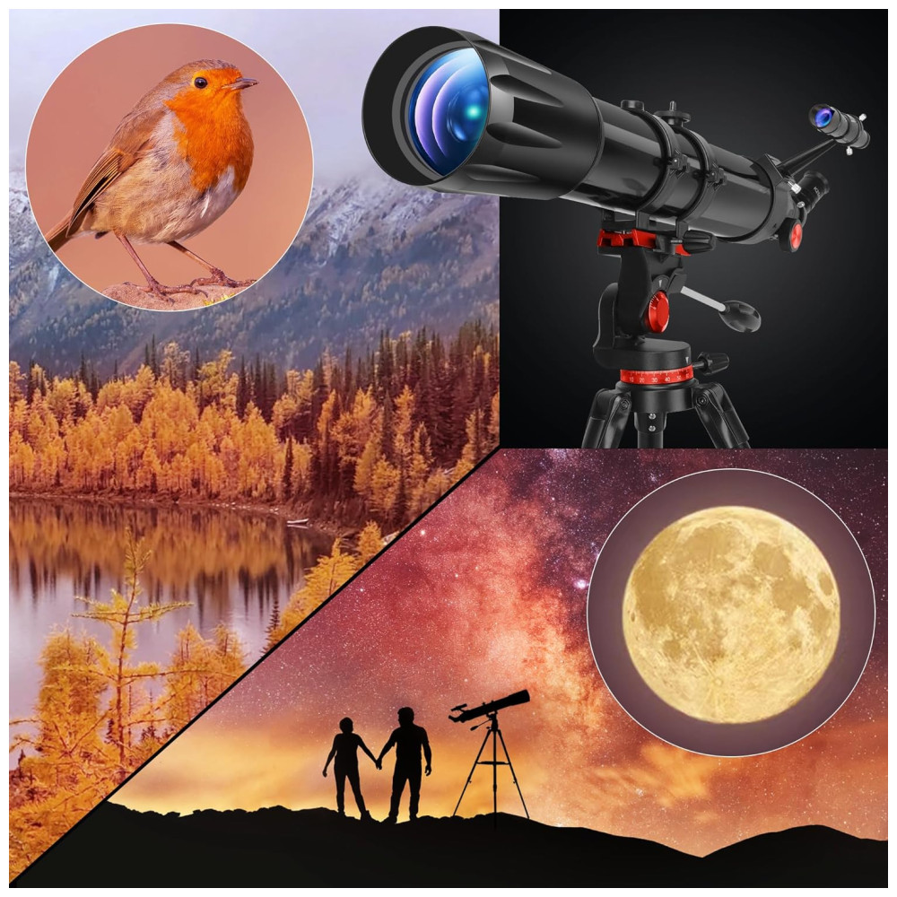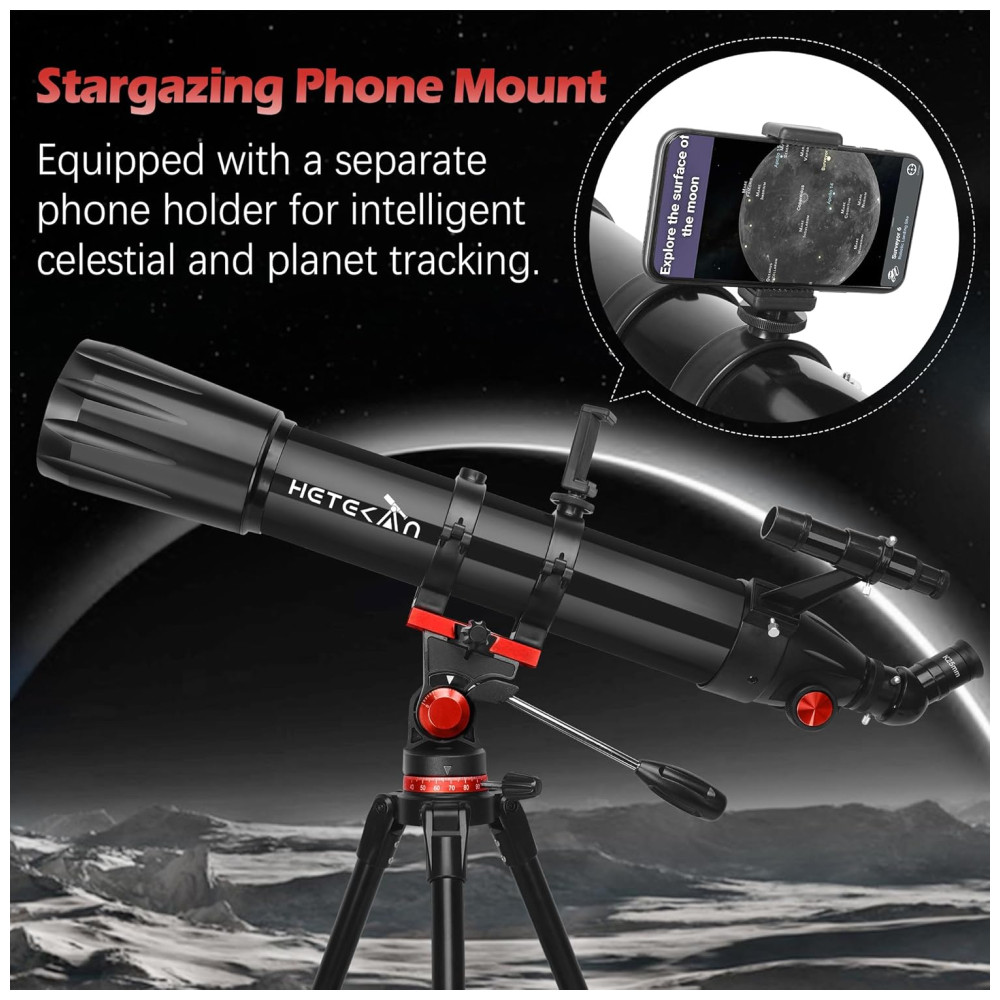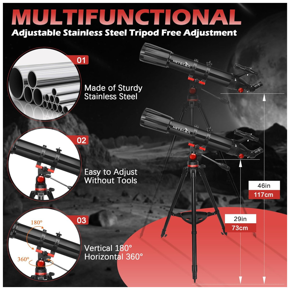 Telescópio Potente para Adultos 90mm Diâmetro e 900mm para Crianças e Iniciantes Ampliação de 450x. Ideal para Observação de Planetas HETEKAN.