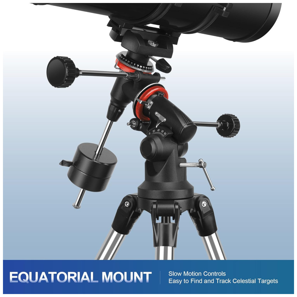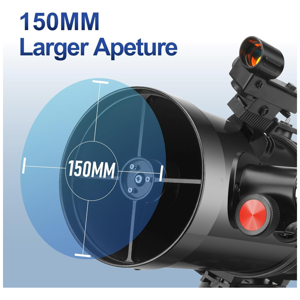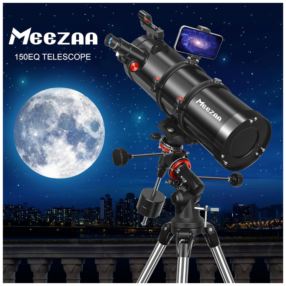 Telescópio Refletor 150EQ: Para Adultos e Iniciantes. Montagem Equatorial Manual Profissional com Lente Barlow 2X Adaptador de Celular MEEZAA.