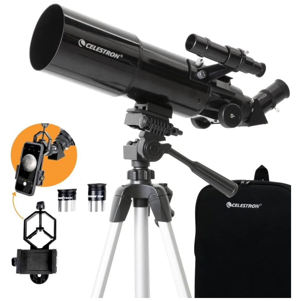 Telescópio Refrator Portátil Celestron 80mm: Ideal para Iniciantes. Óptica de Vidro Totalmente Revestida Adaptador de Celular para Digiscoping.