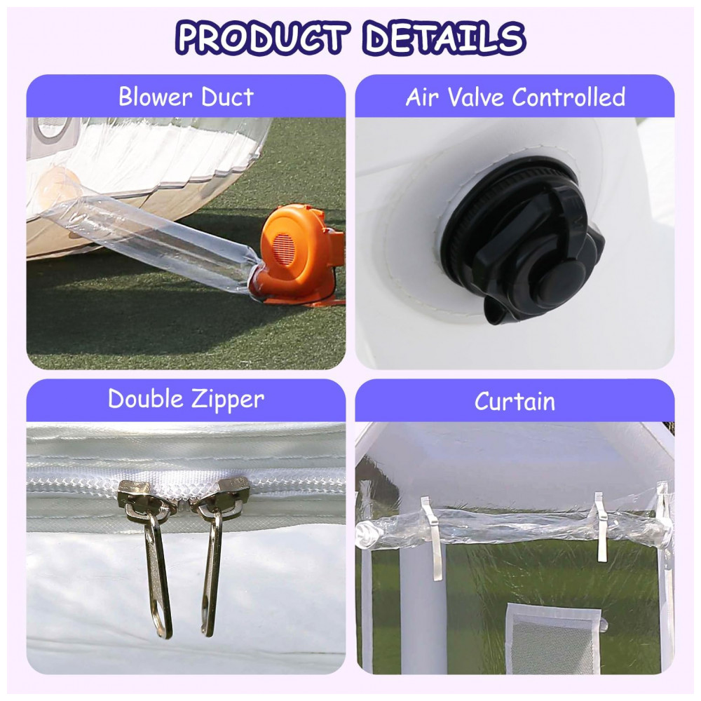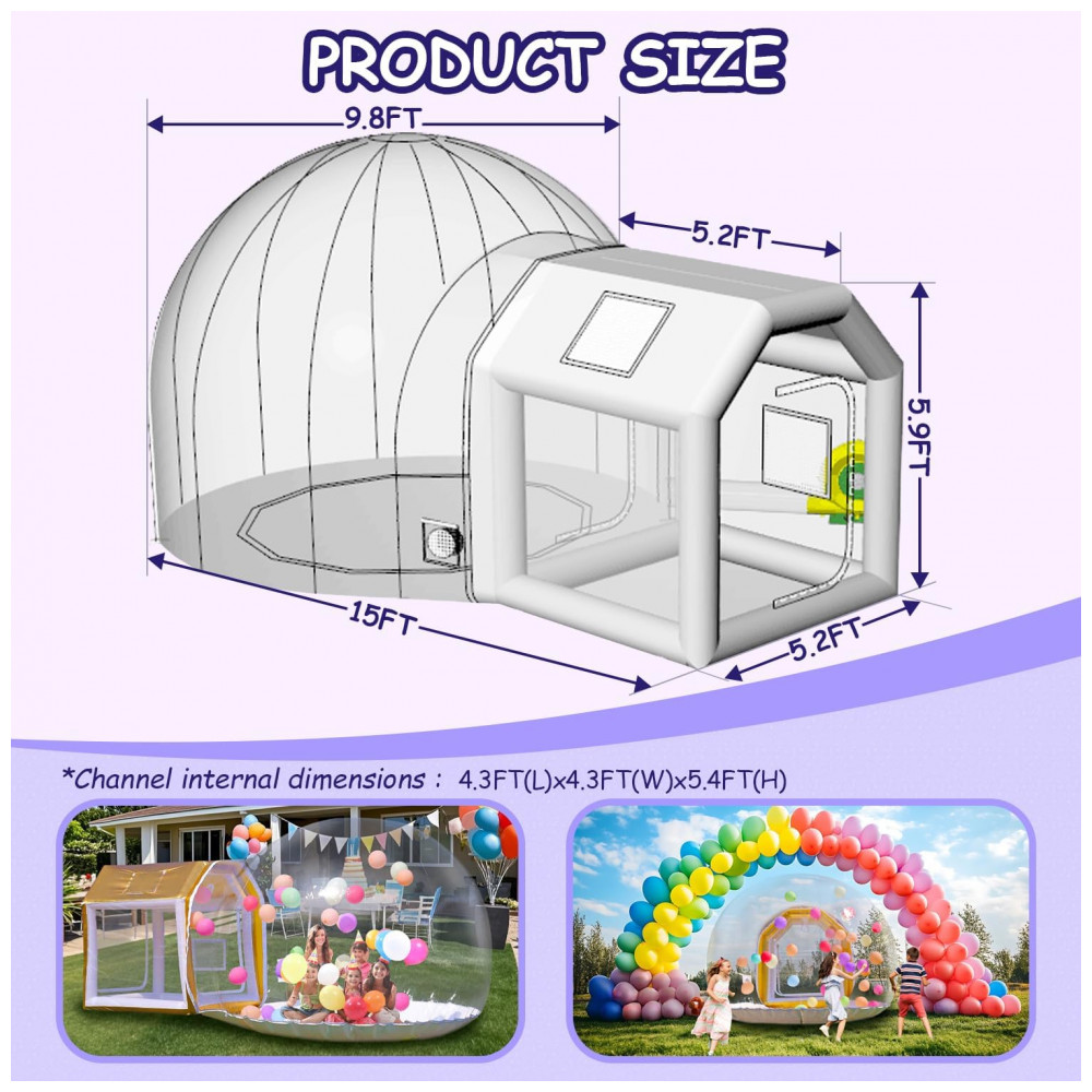 Tenda Inflável de Bolha Transparente de 3m para Crianças Casa de Bolha Inflável com Túnel e Soprador de Ar Bolha com 450W InfladorSayok
